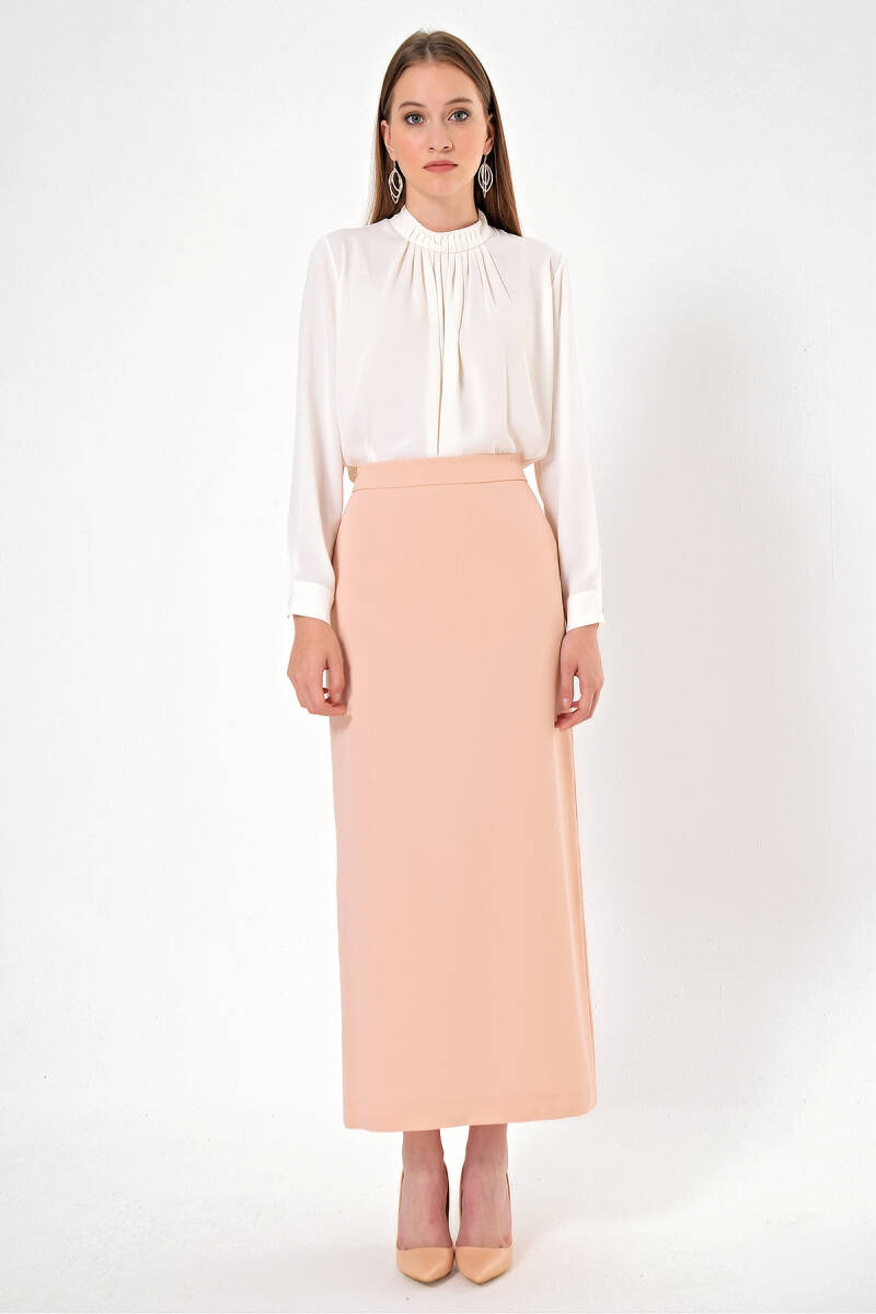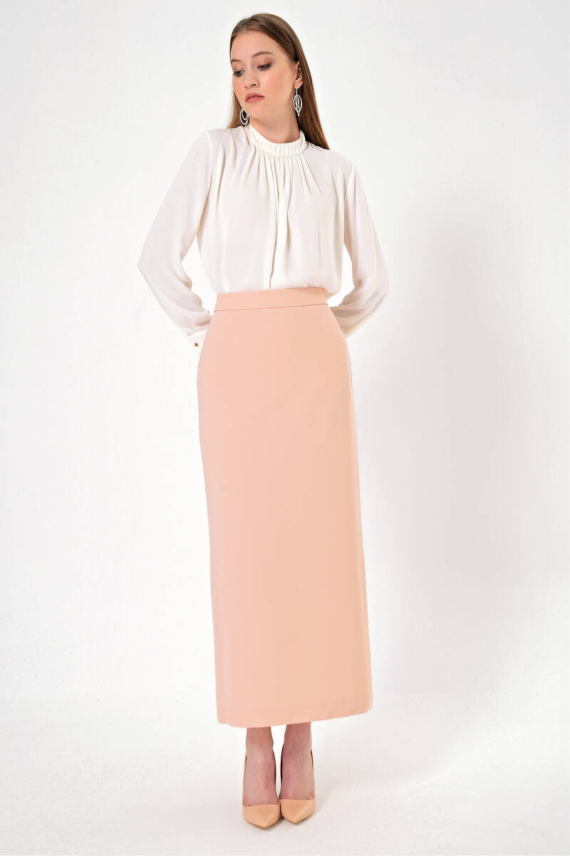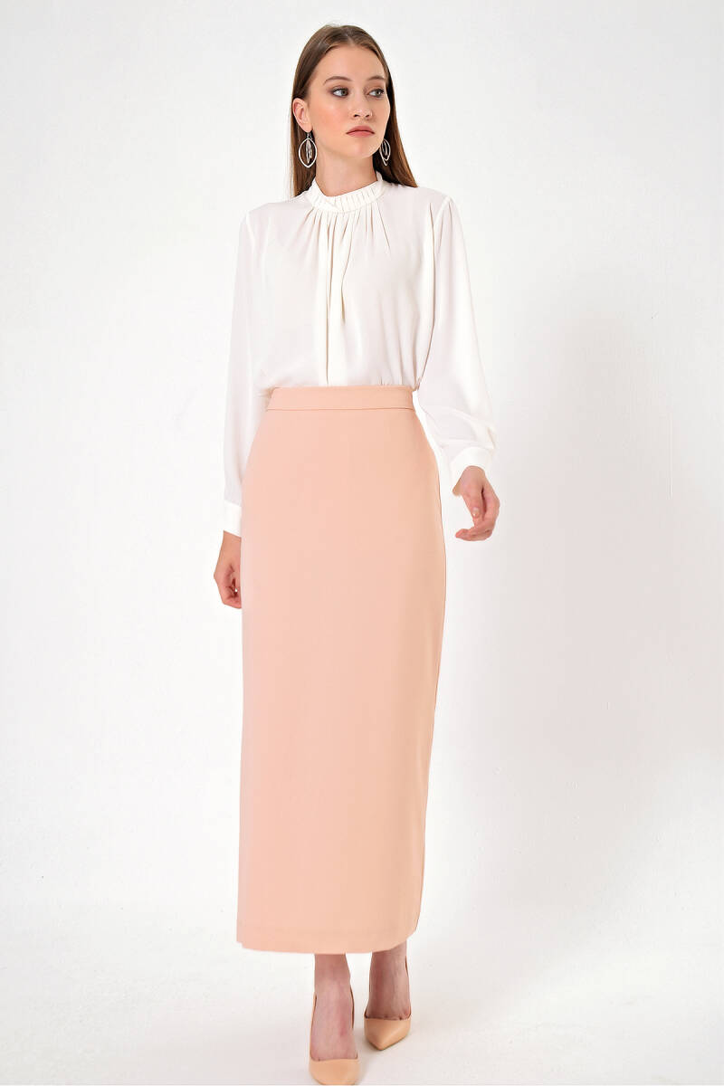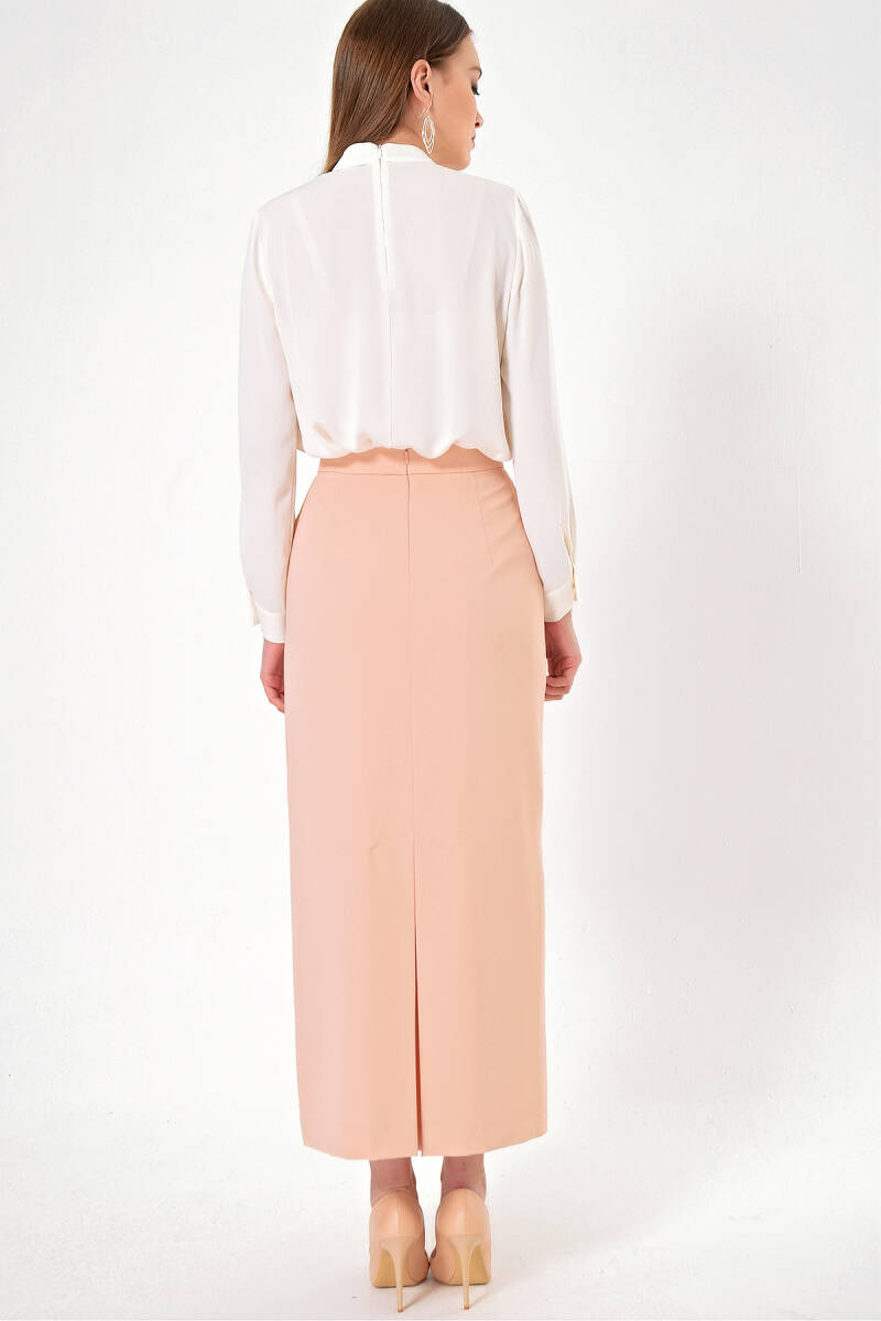 Vizon Düğmeli Düz Kalem Etek