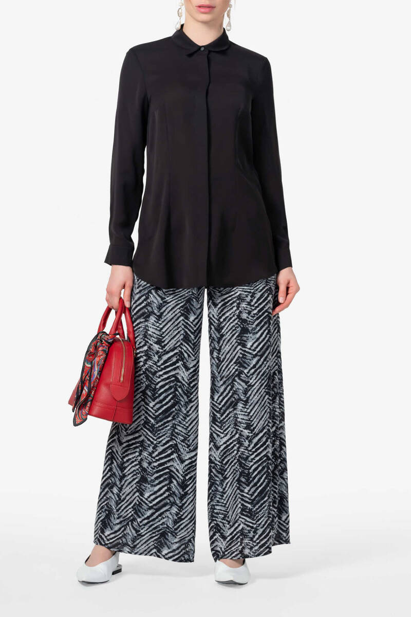 Siyah Gül Broşlu Bluz