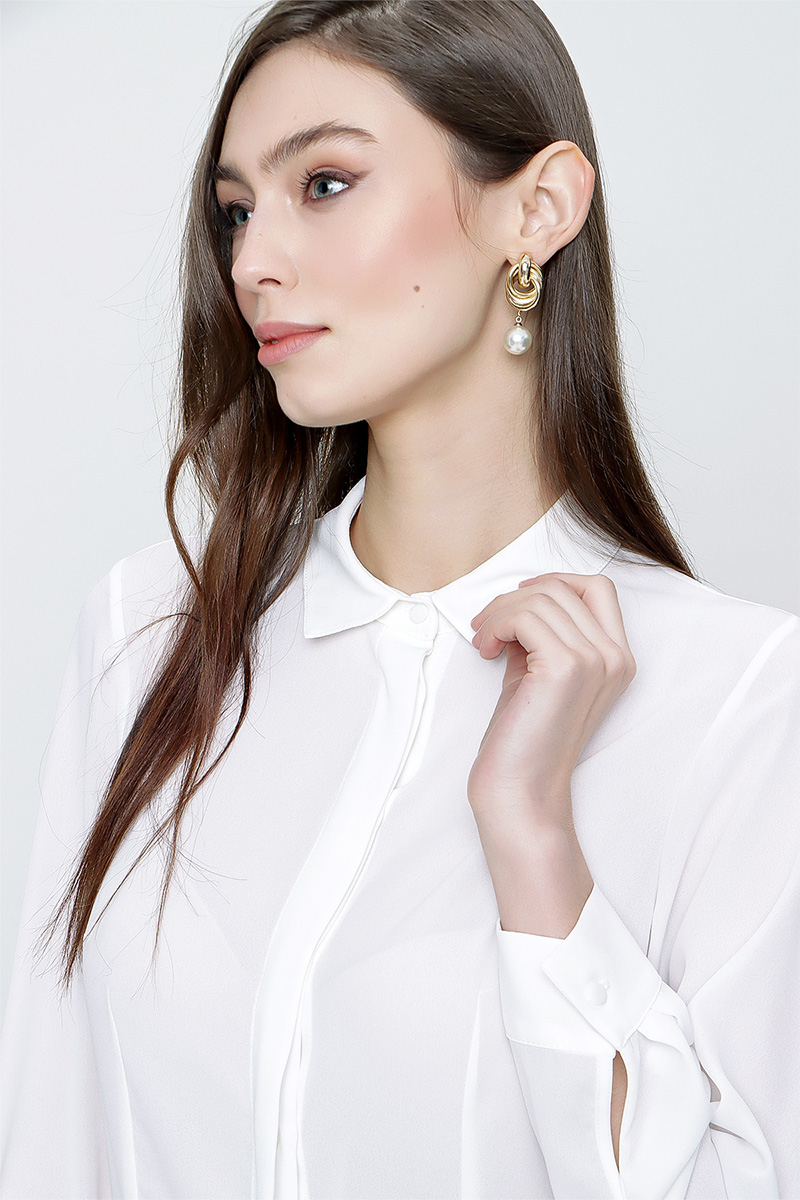 Antrasit Yaka İşlemeli Çizgili Bluz
