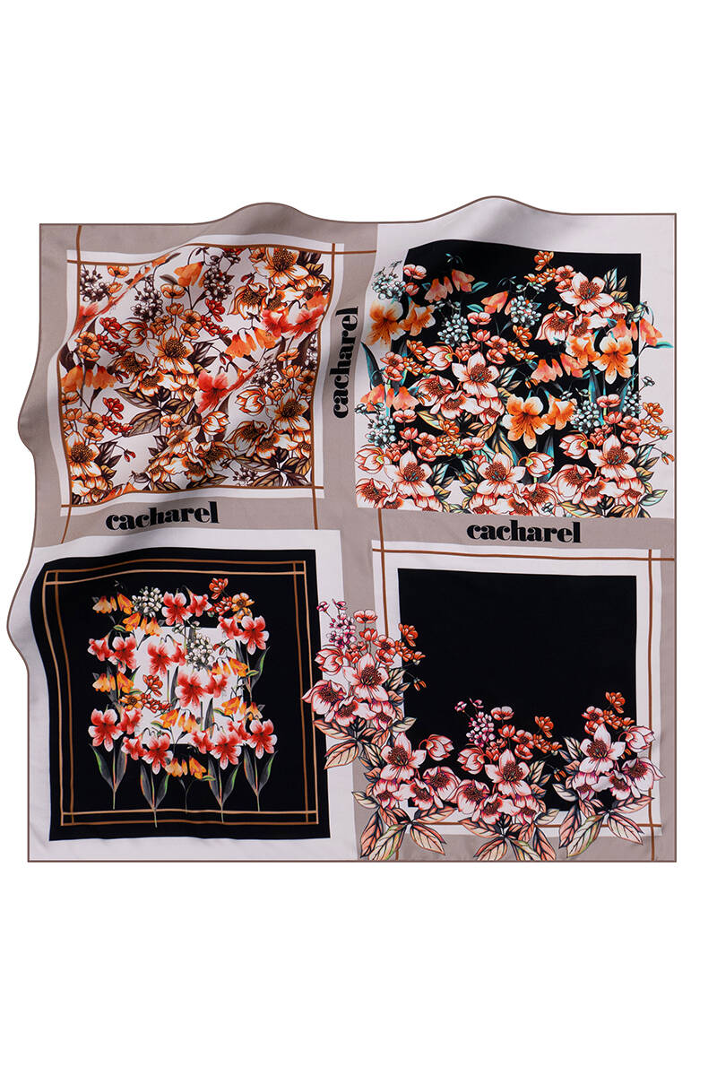 Çiçek Desenli 90X90 Polyester Twill Eşarp