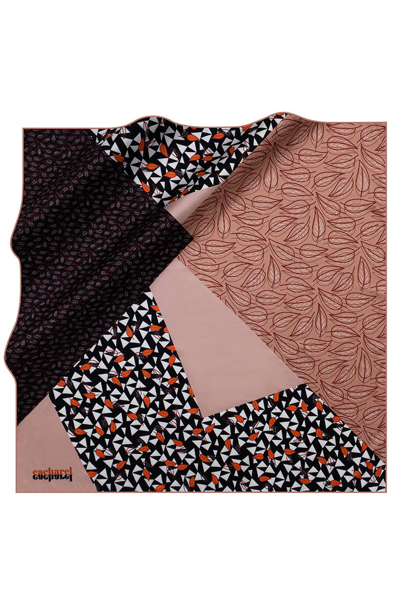 Geometrik Desenli 90X90 Polyesyer Twill Eşarp