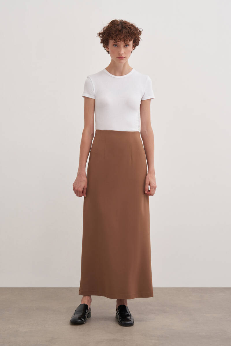Camel Tencel Evaze Etek