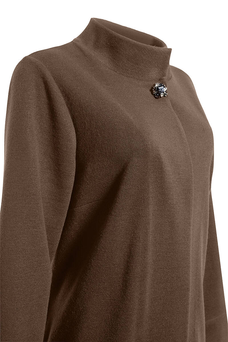 Ekru Yakası Taşlı Düğmeli Kap