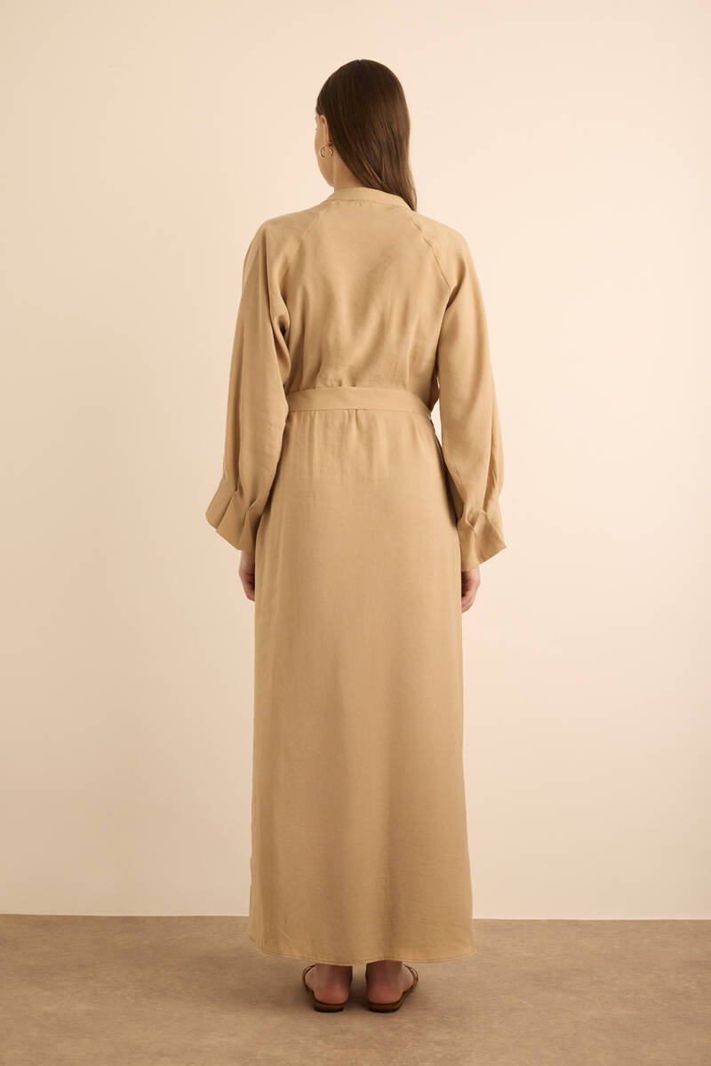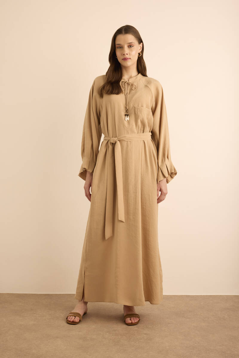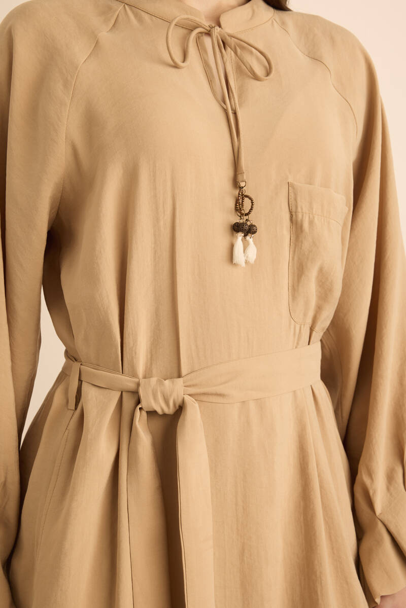 Camel Kolları Pile Detaylı Elbise