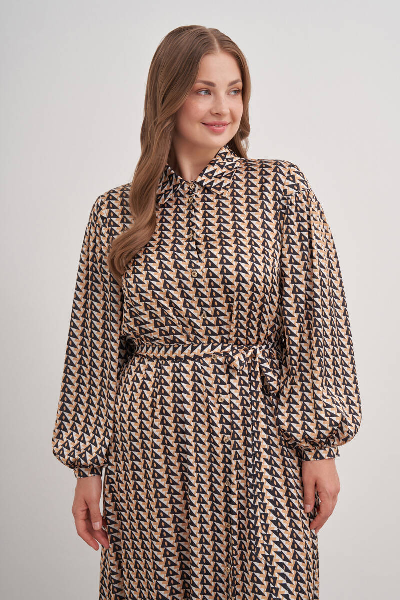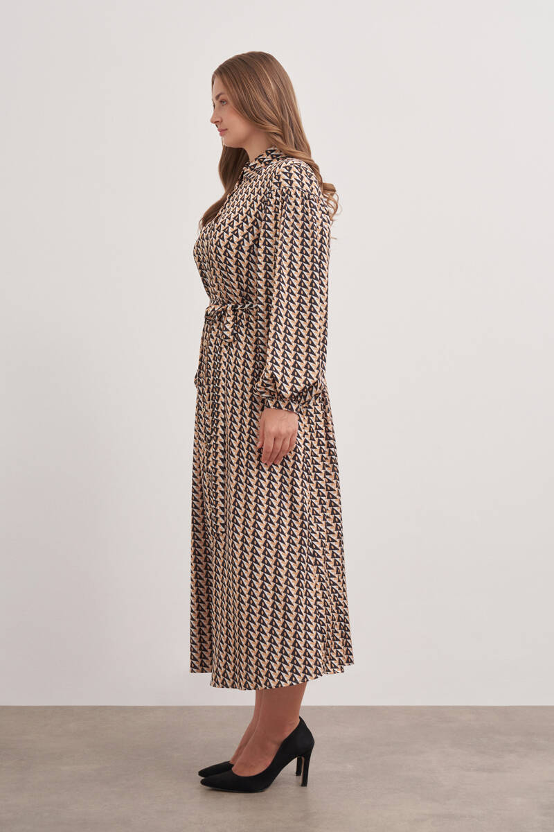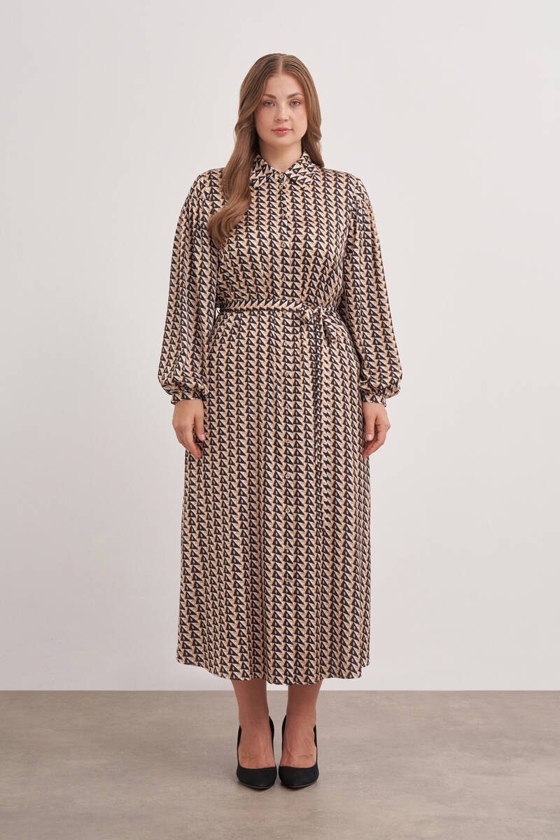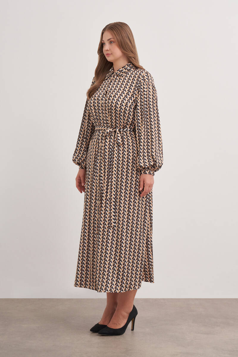 Turkuaz Geometrik Desenli Gömlek Elbise