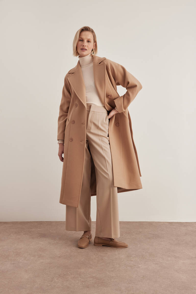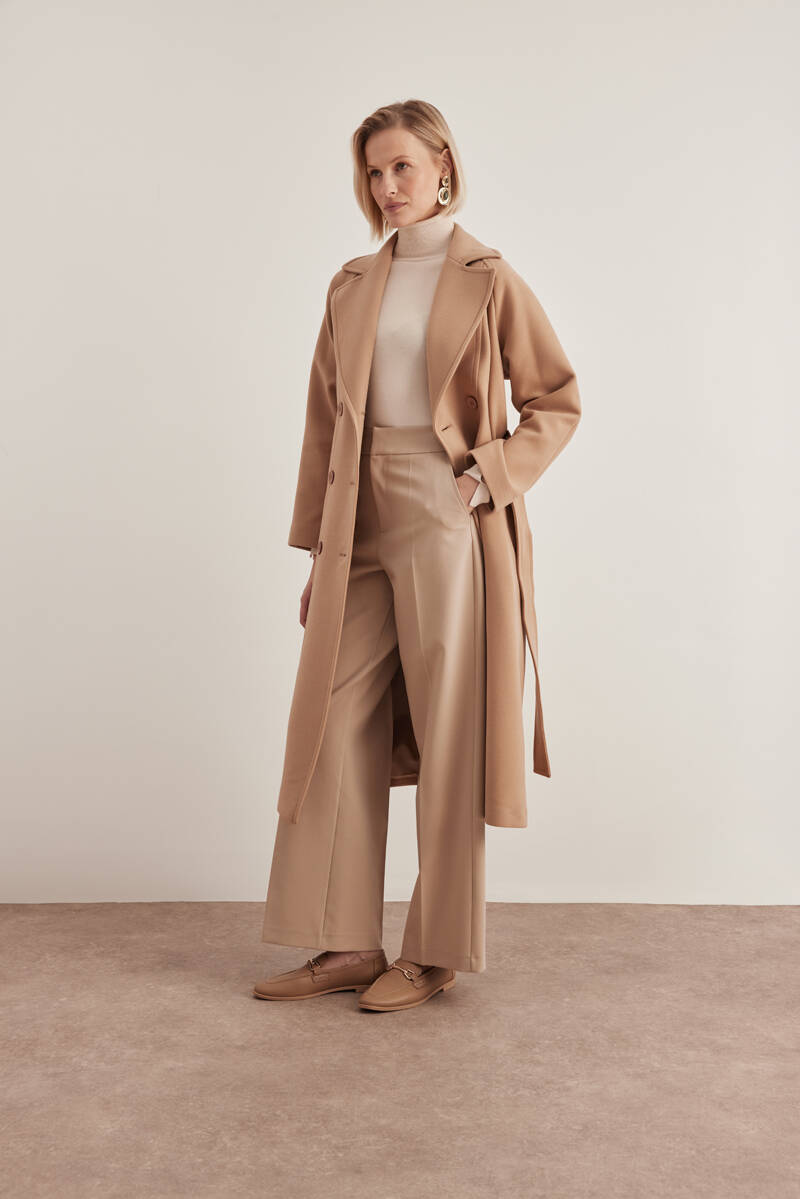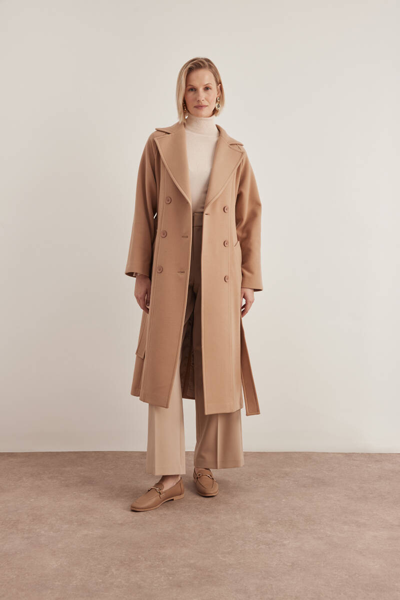 Camel İçi Kürk, Suni Deri Şal Yaka Kaban