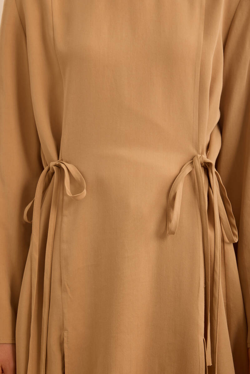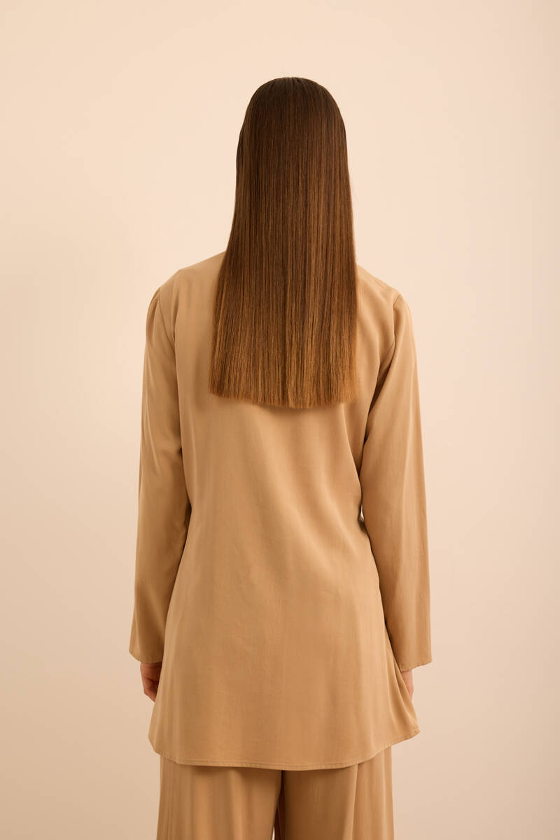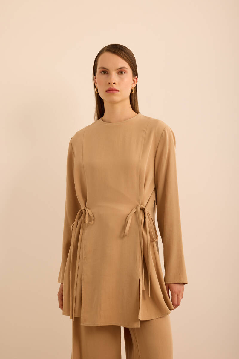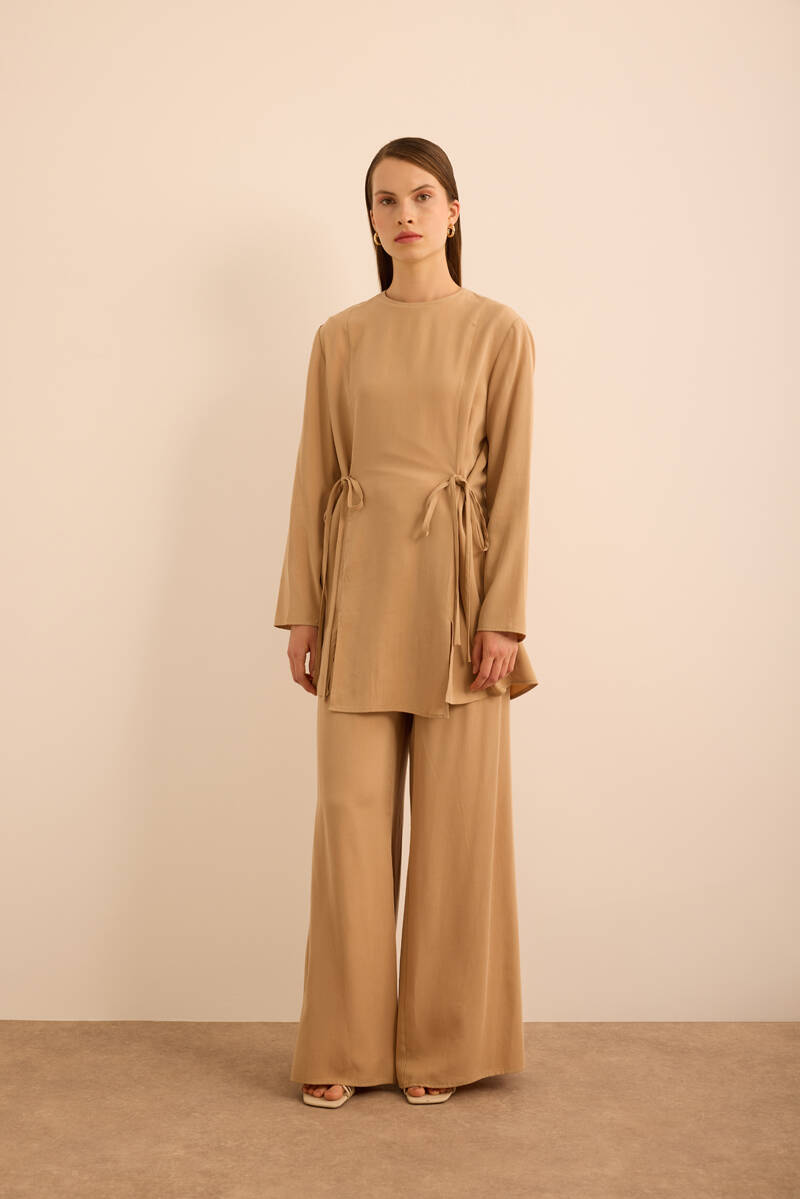 Ekru Bağlama Detaylı Beli Lastikli Tencel Tweenset