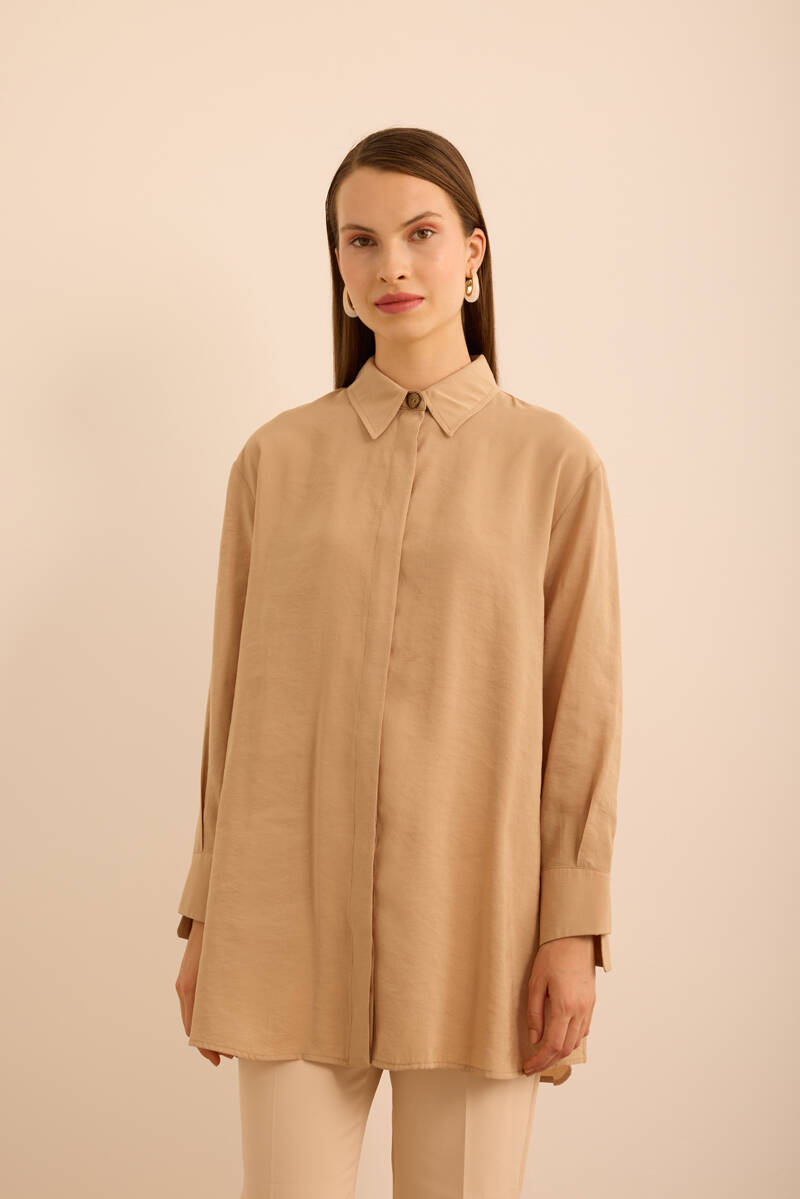 Ekru Kol Ucu Dikiş Detaylı Viscon Tunik