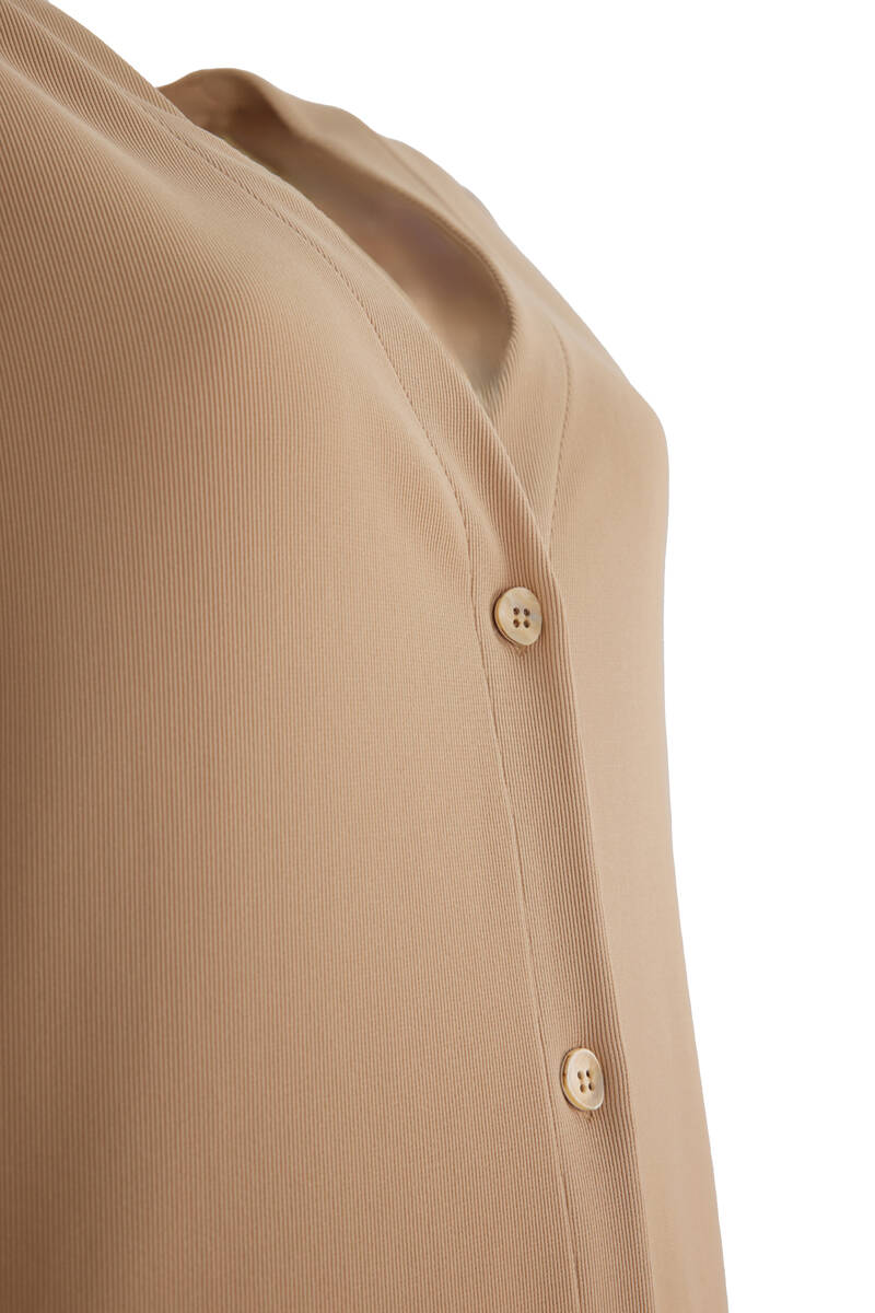 Camel Düğmeli Uzun Hırka