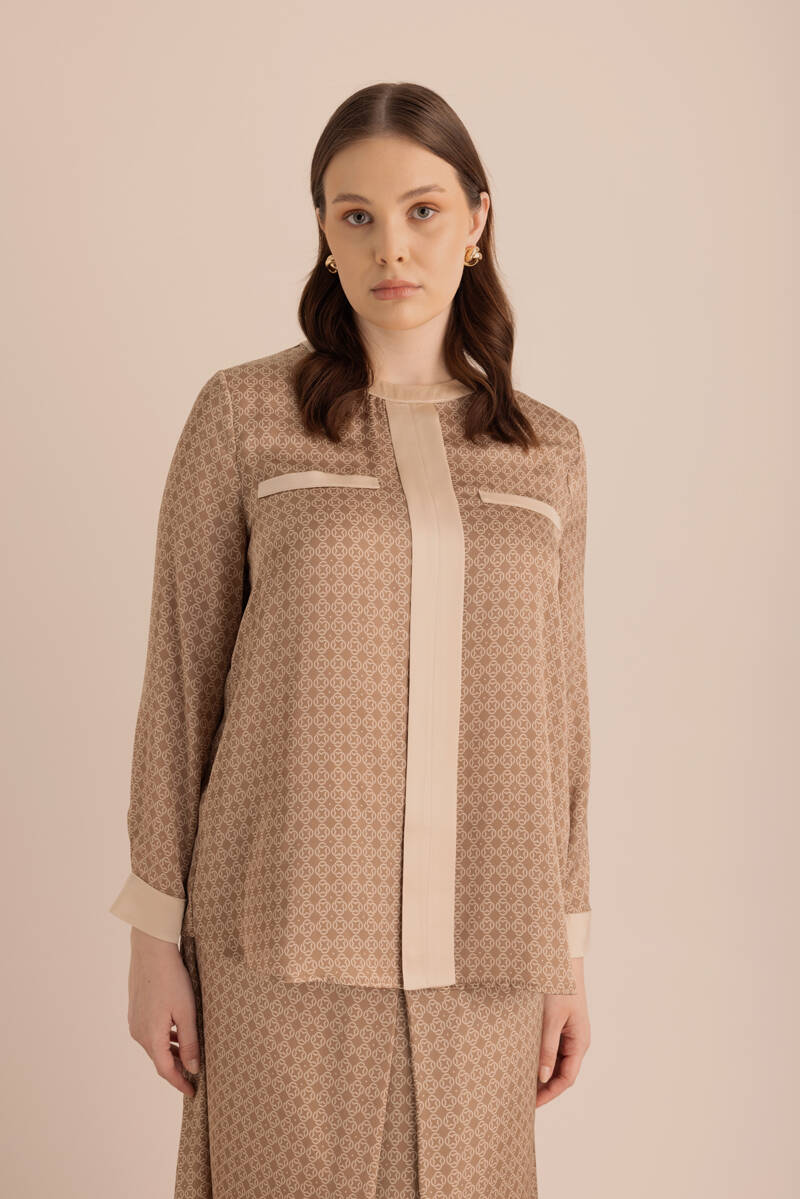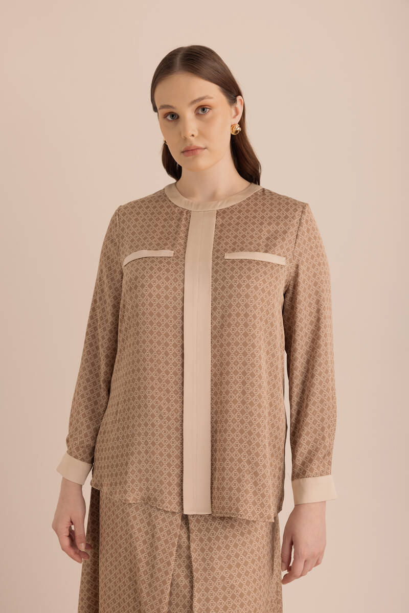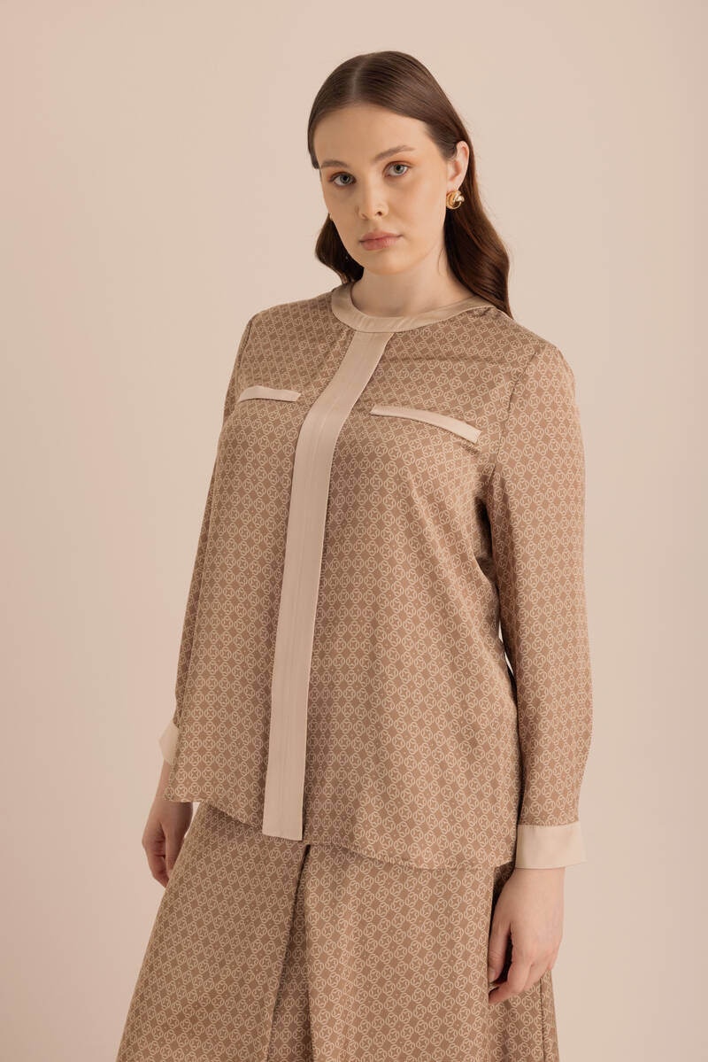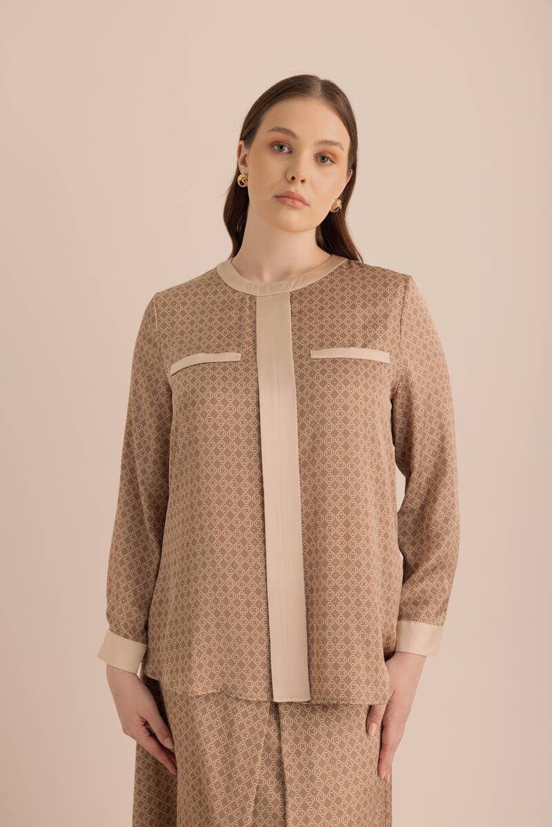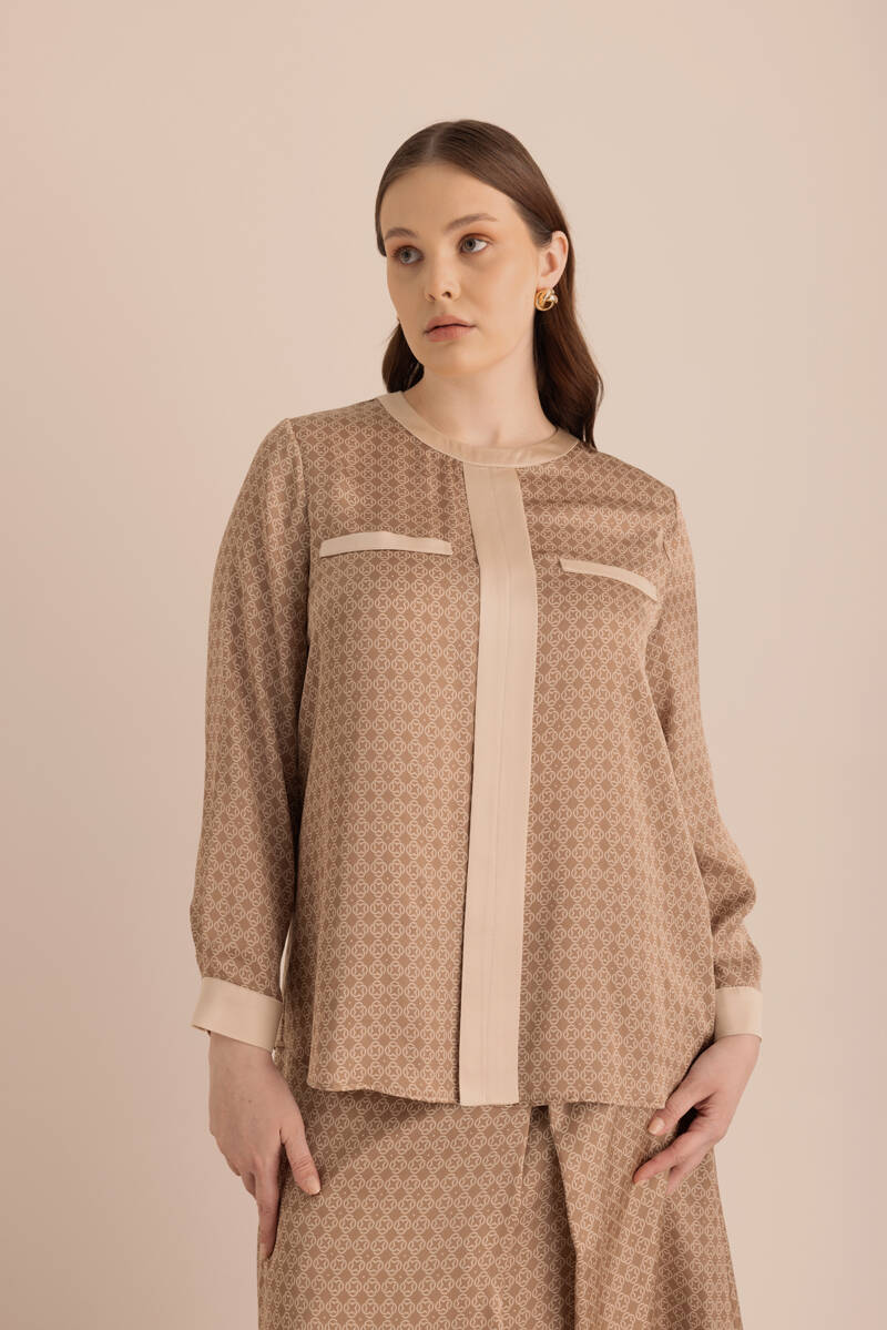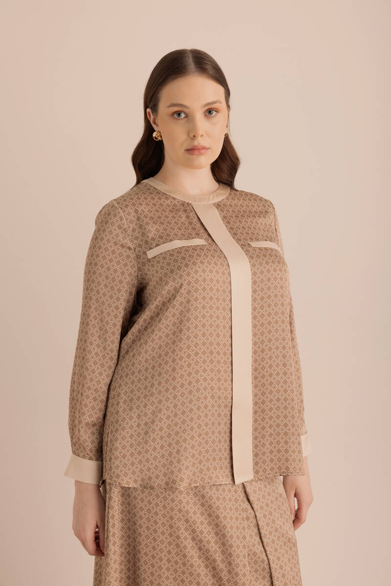 Camel Koza Desen Detaylı Bol Pantolon