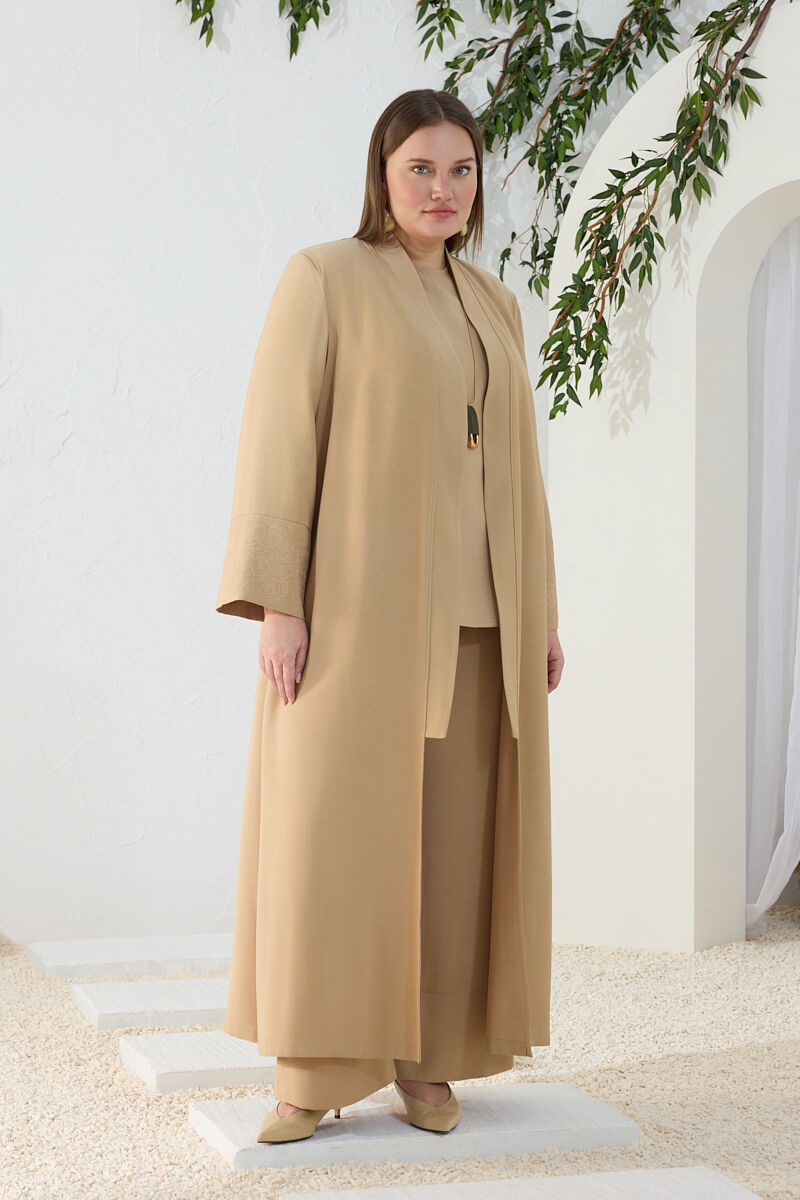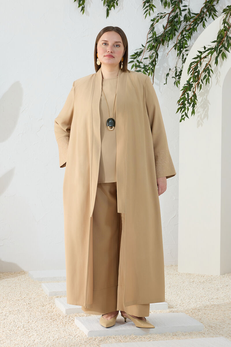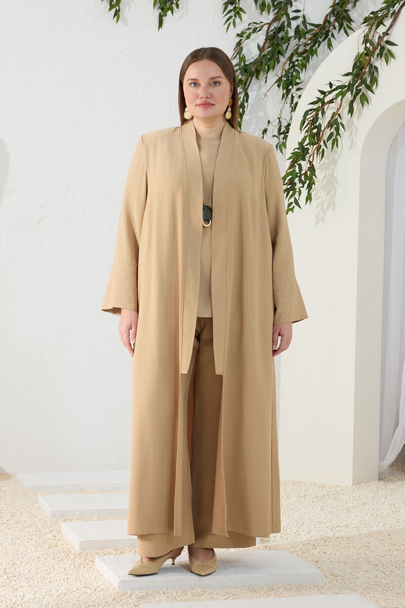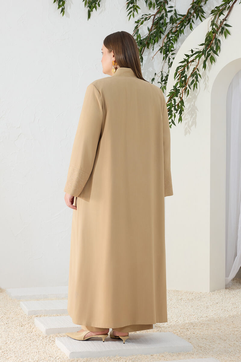 Kahverengi Yuvarlak Kapitone Detaylı Kimono
