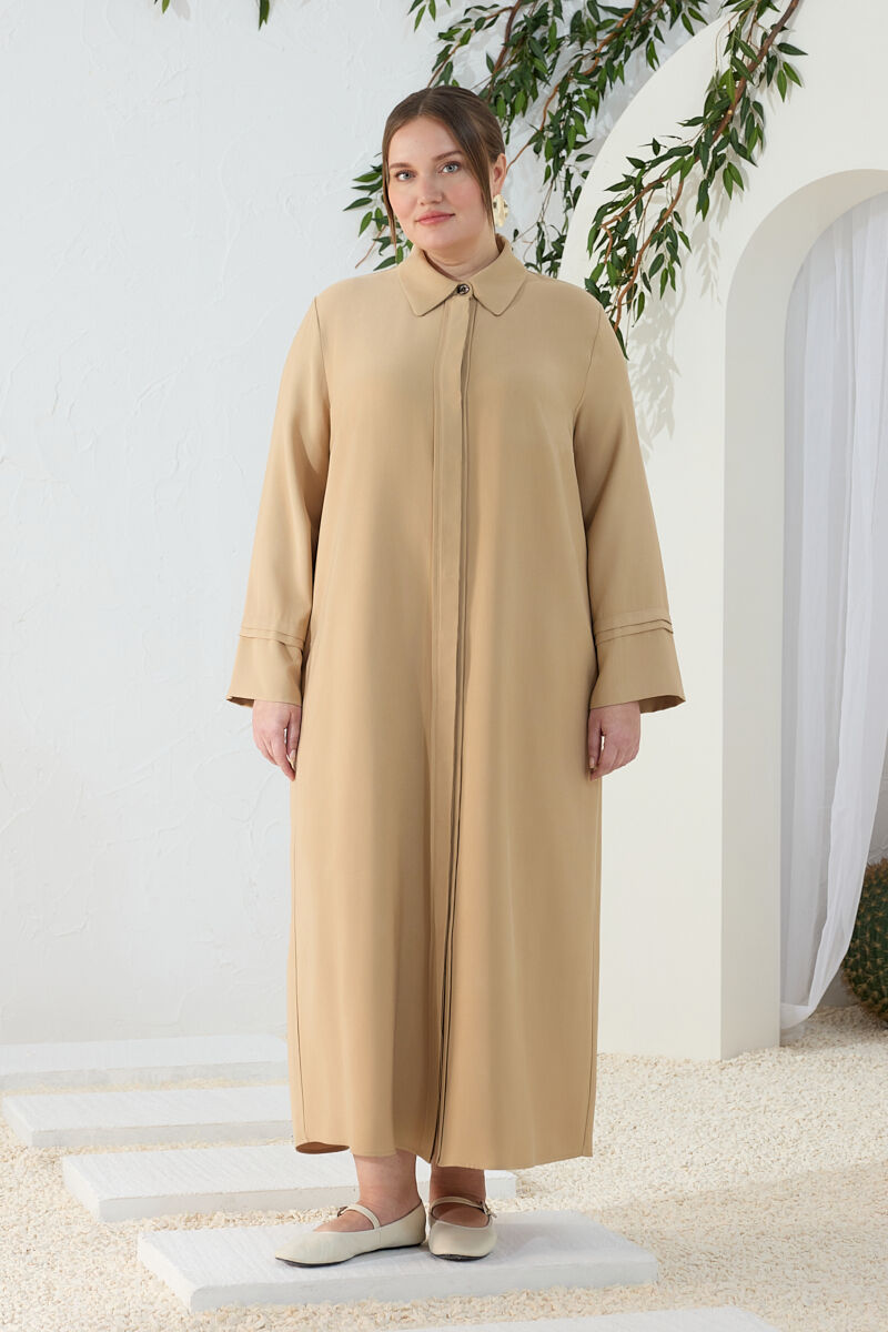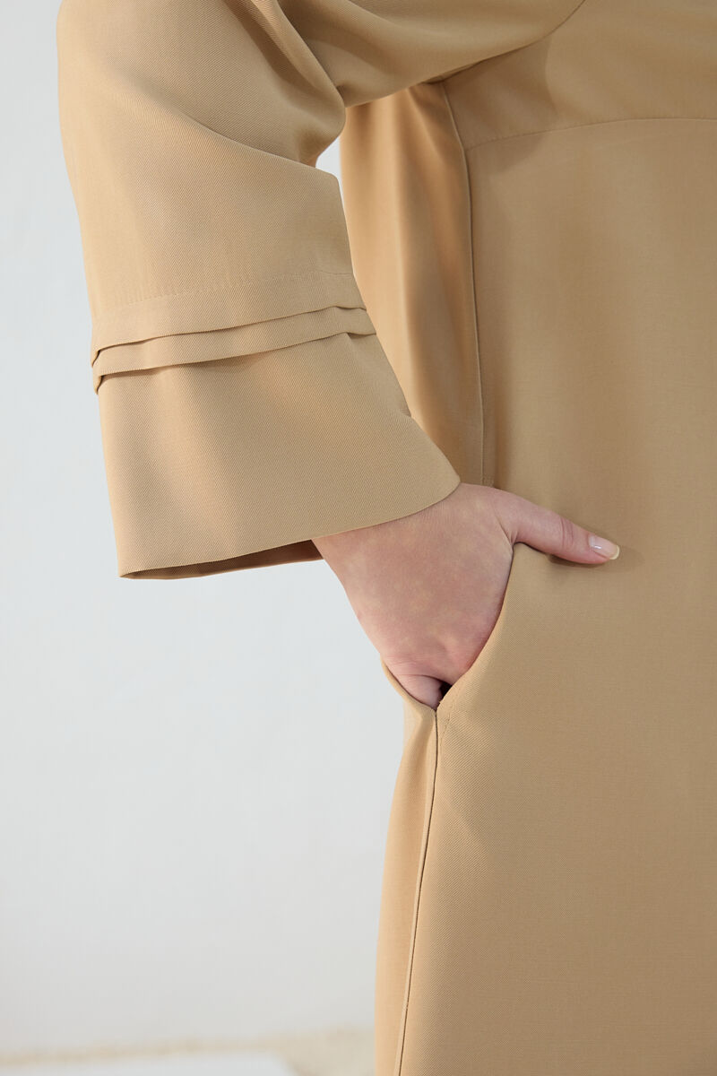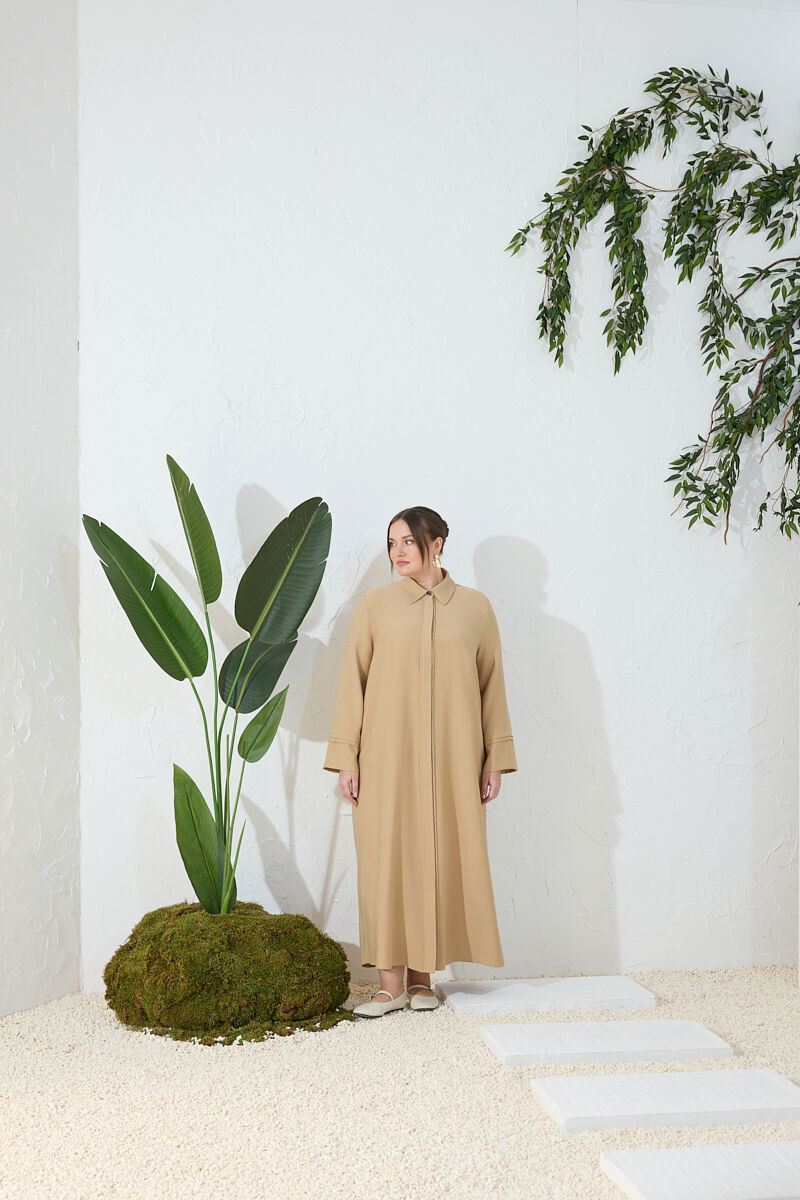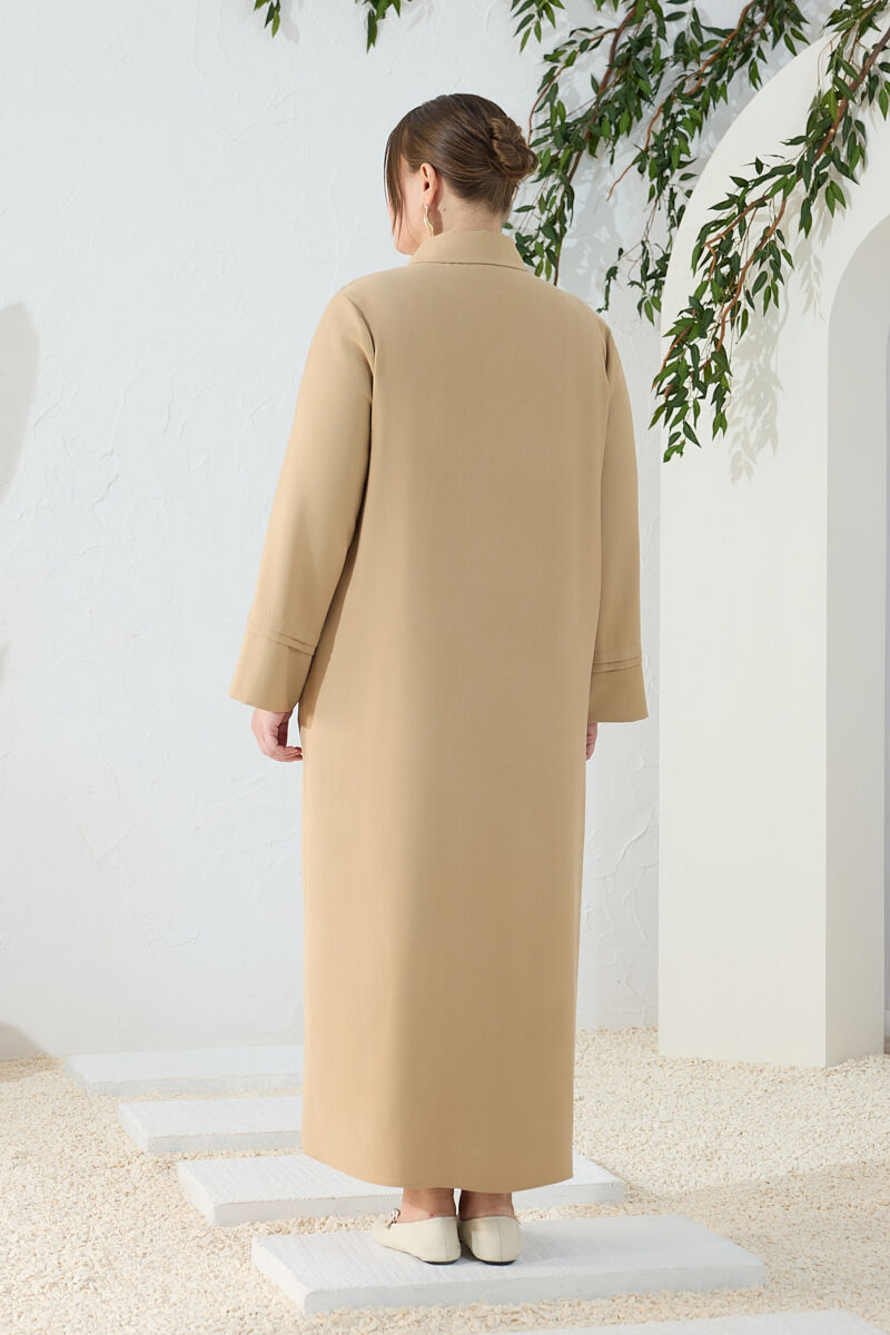 Haki Fermuarlı Keten Ferace