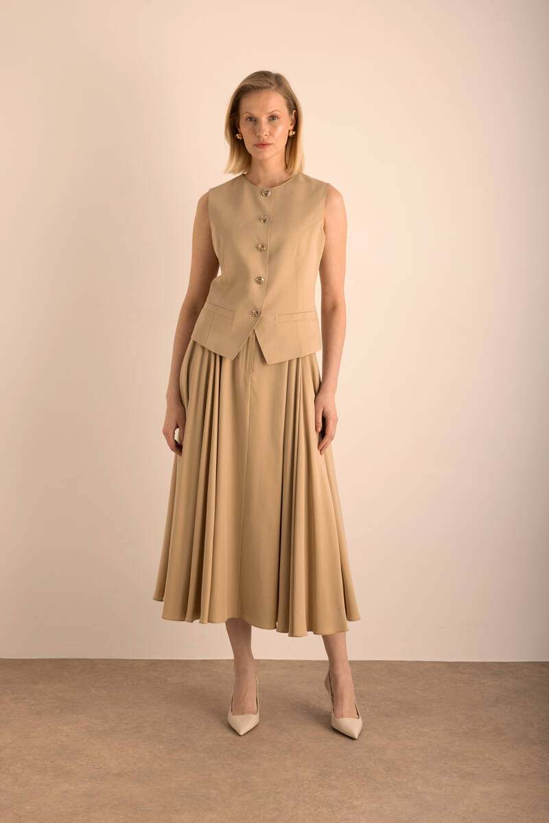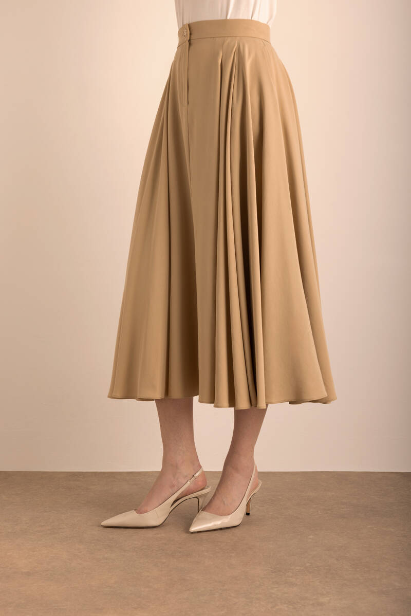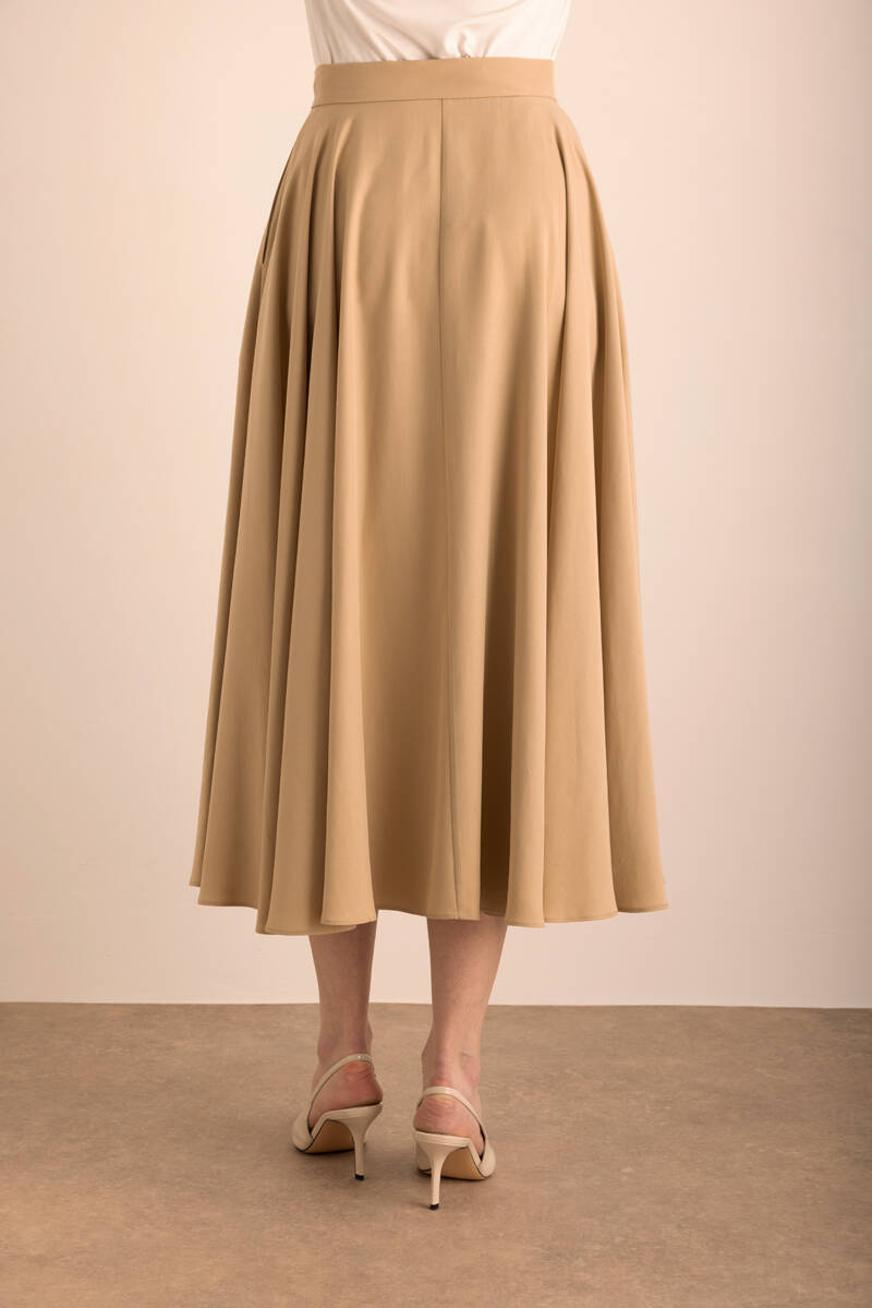 Bej Kloş Keten Etek