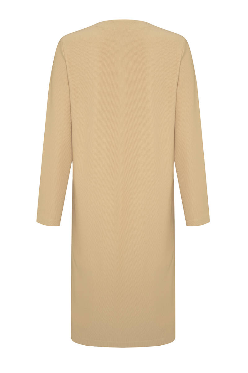 Ekru Cepleri İşleme Detaylı Örme Uzun Hırka
