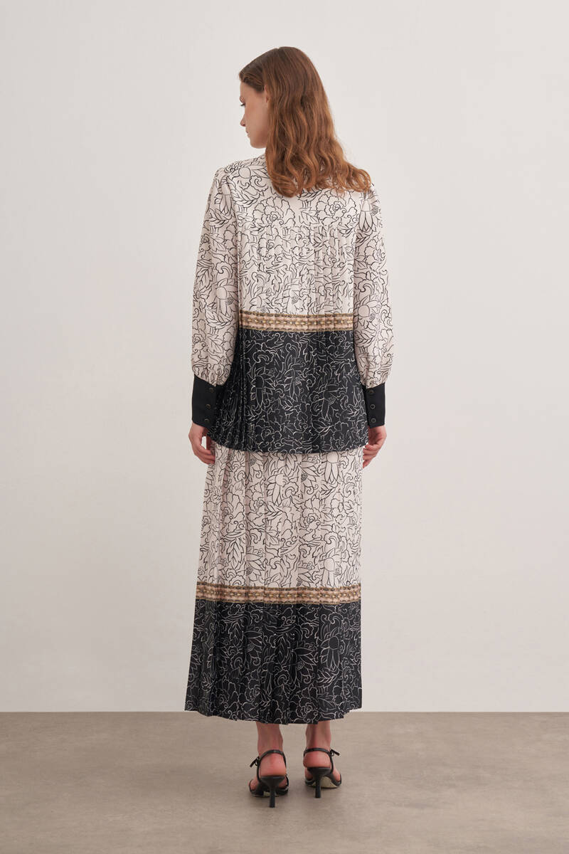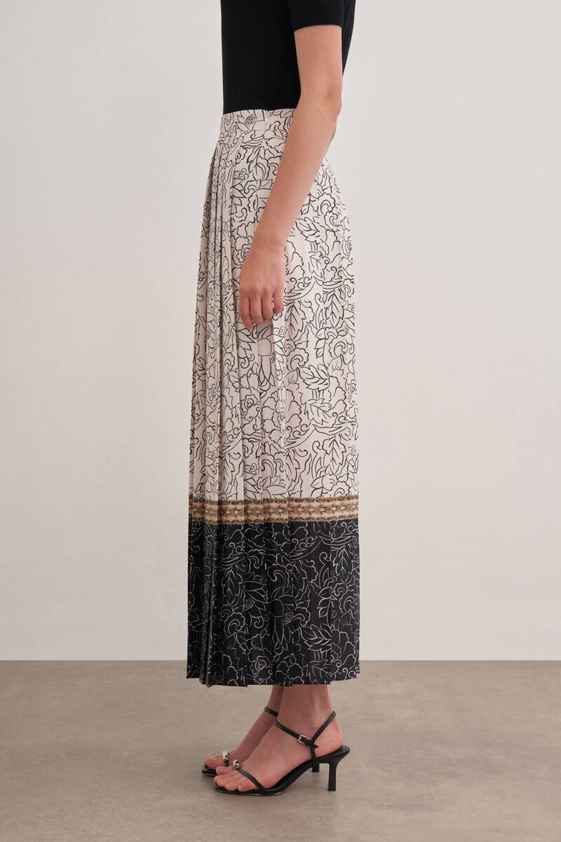 Ekru 1178111 Beli Kemerli Desenli Kumaş Pileli Etek