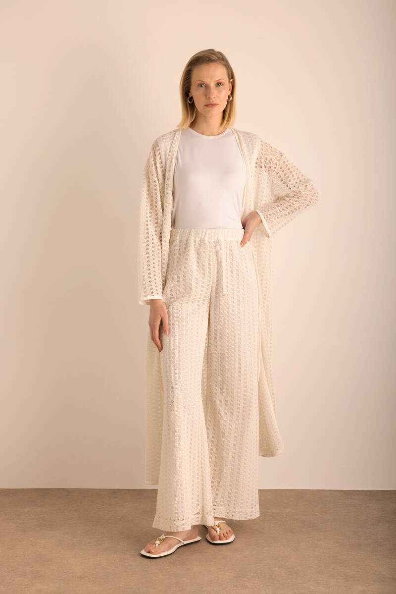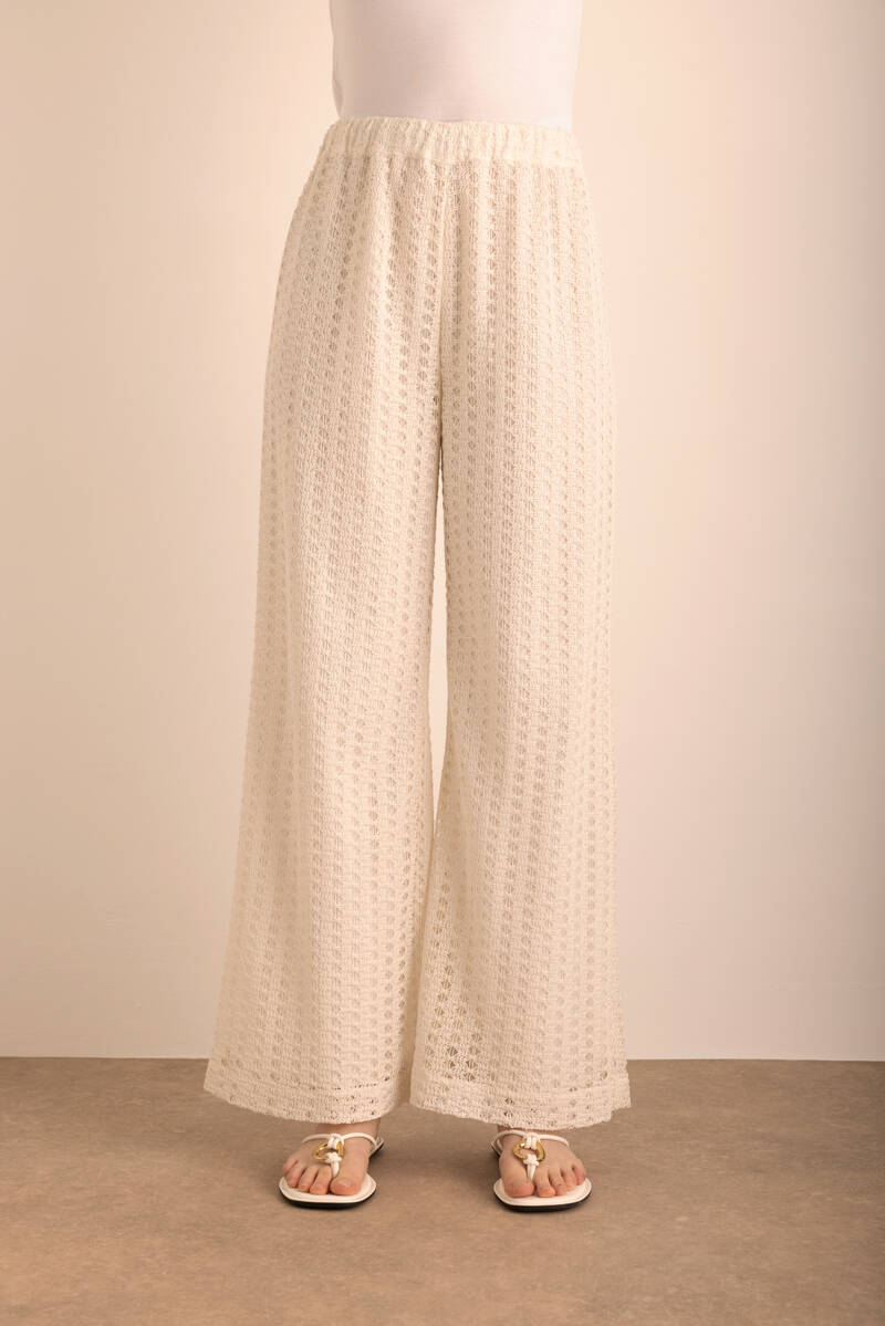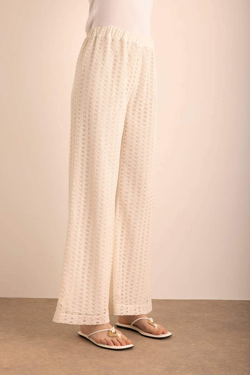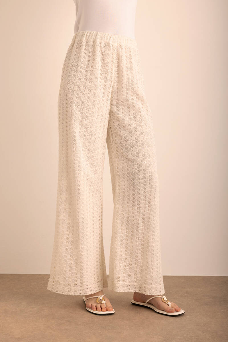 Ekru Beli Lastikli Cotton Dantel Astarlı Pantolon
