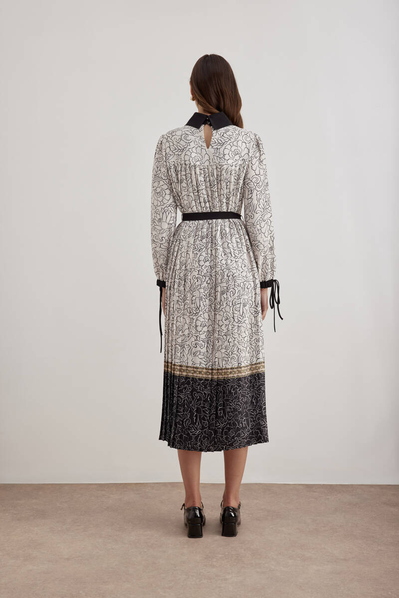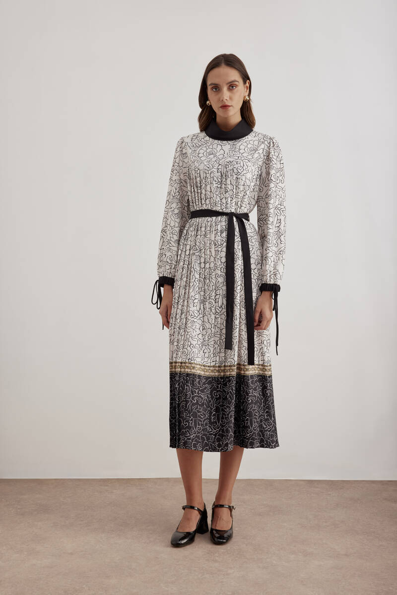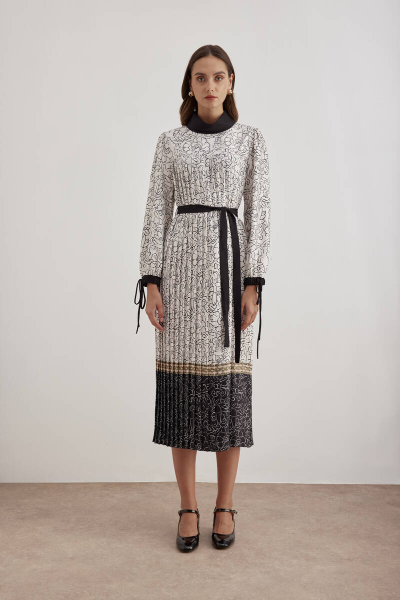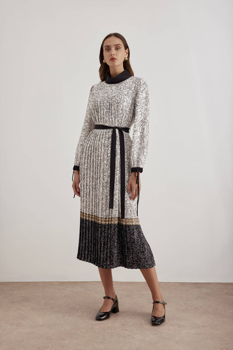 Somon Desenli Beli Bağlama Detaylı Elbise