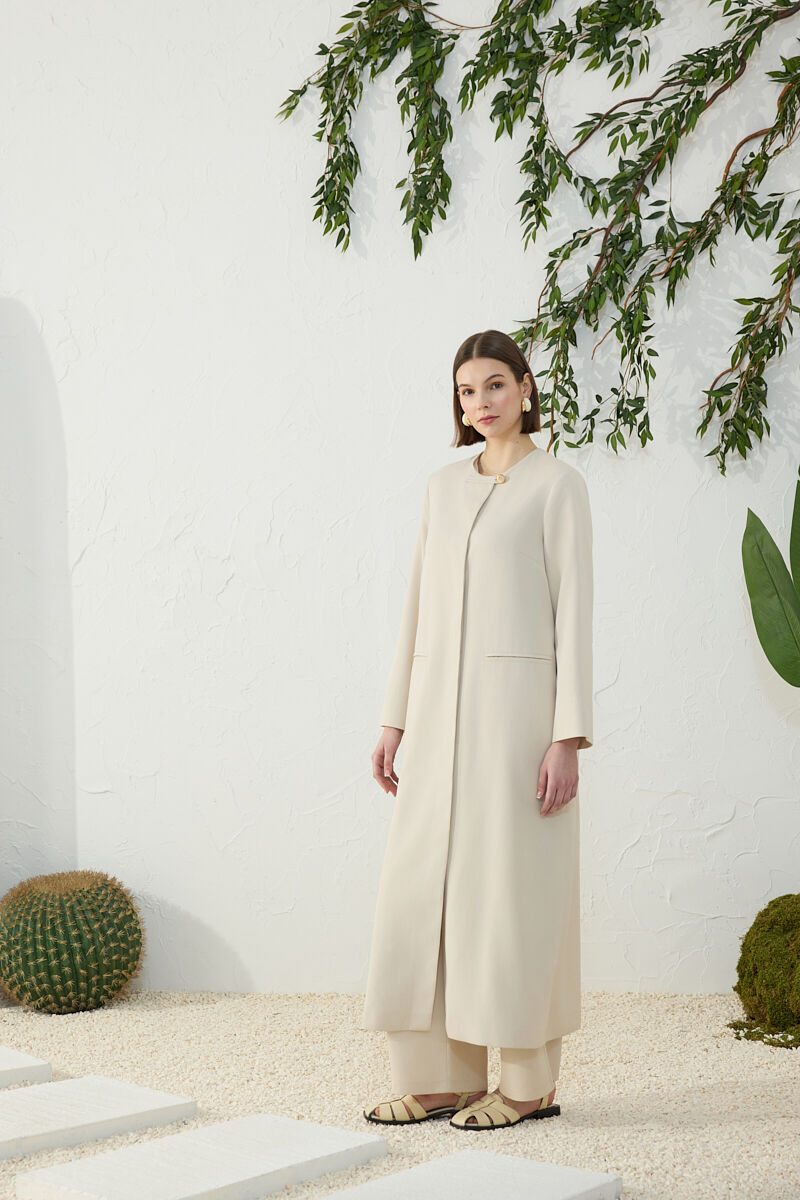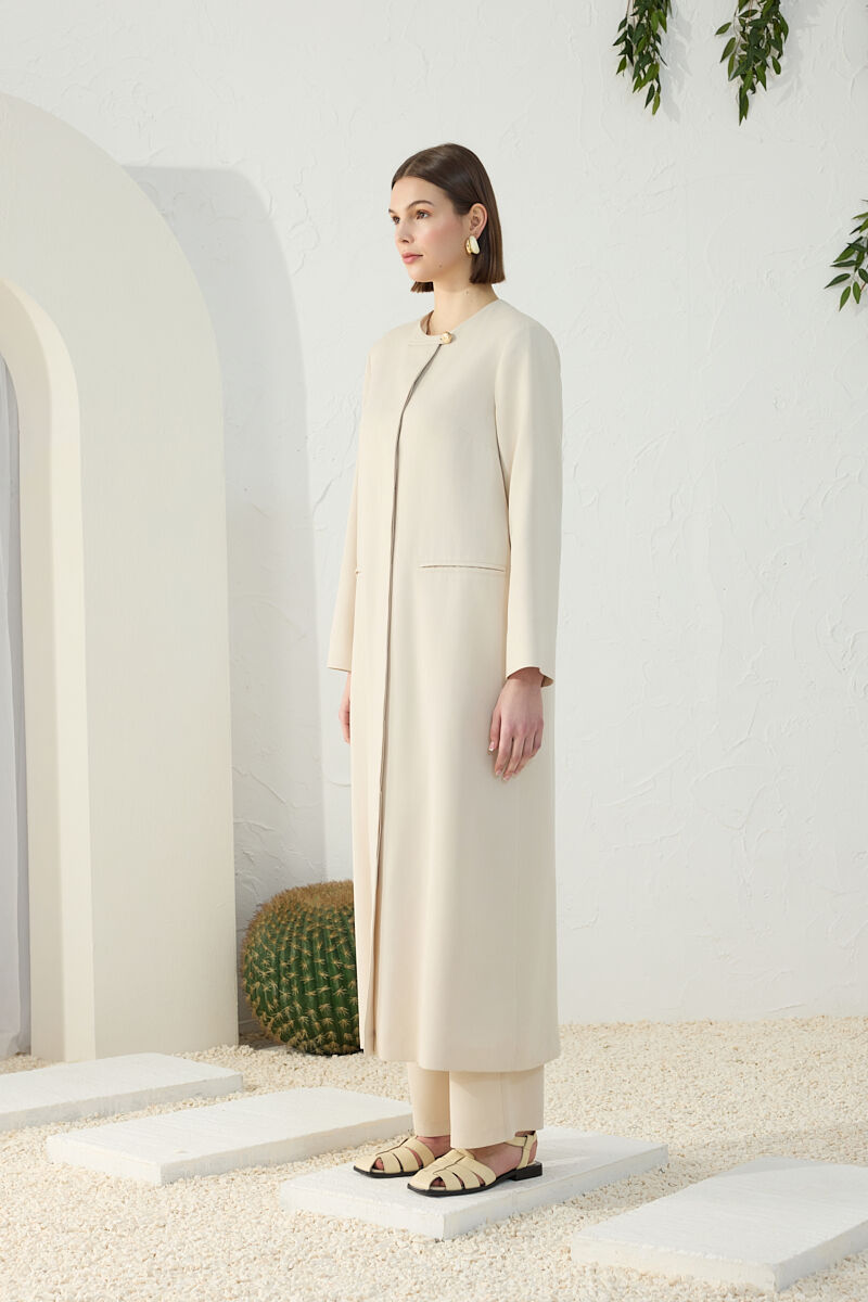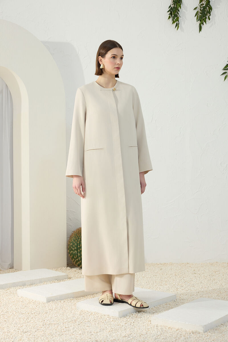 Taş Brit Düğme Detaylı Ferace