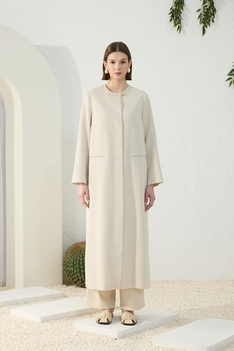 Bej Fermuarlı Ferace