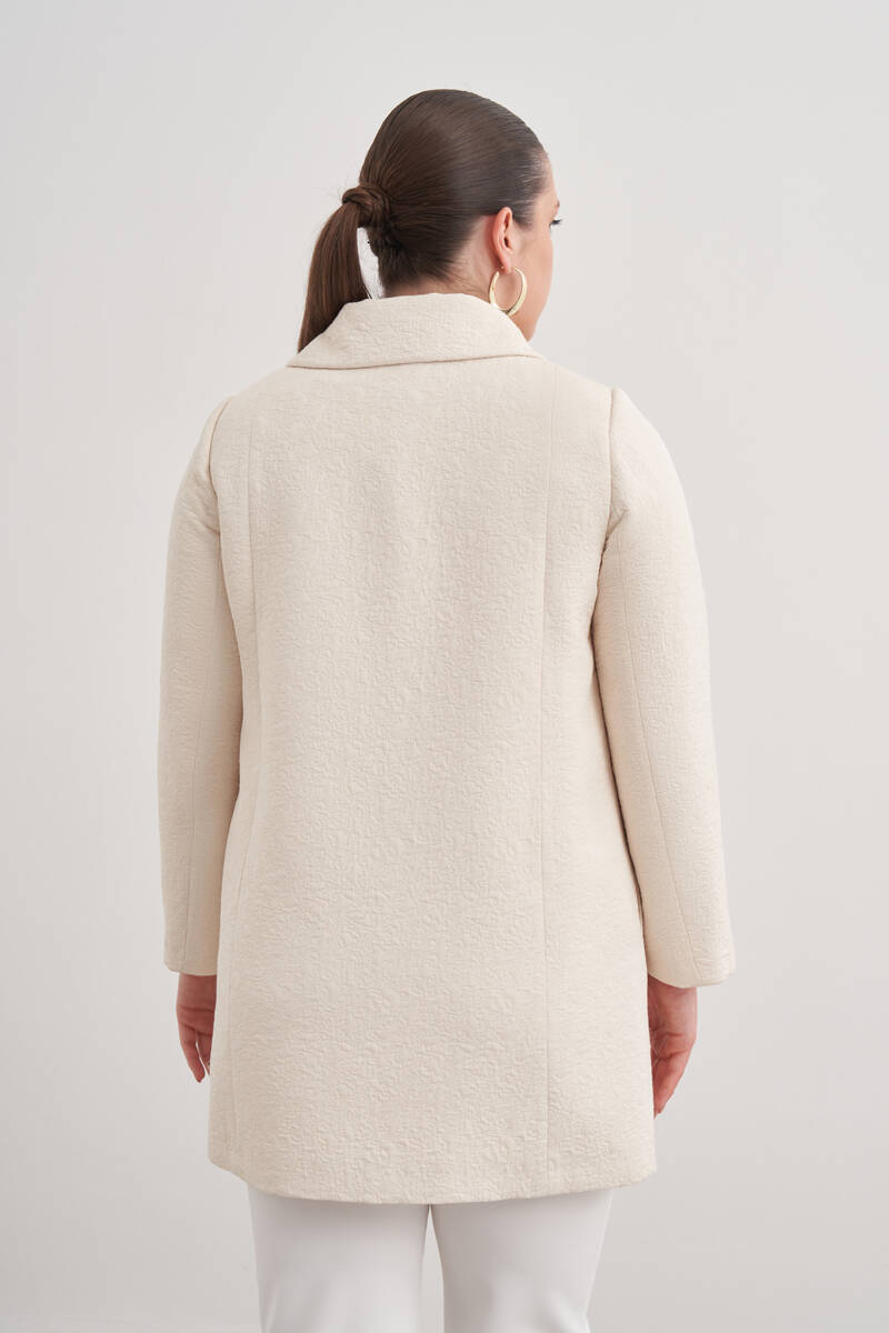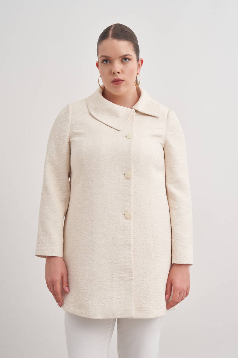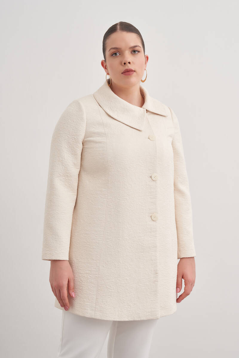 Ekru Yakası Taşlı Düğmeli Kap