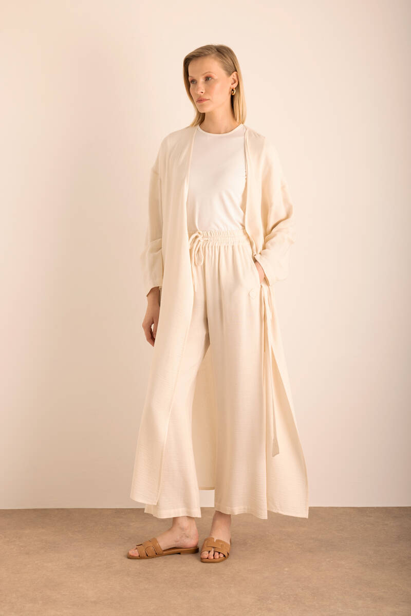 Ekru Viscon Cotton , Yandan Bağlamalı Sabahlık