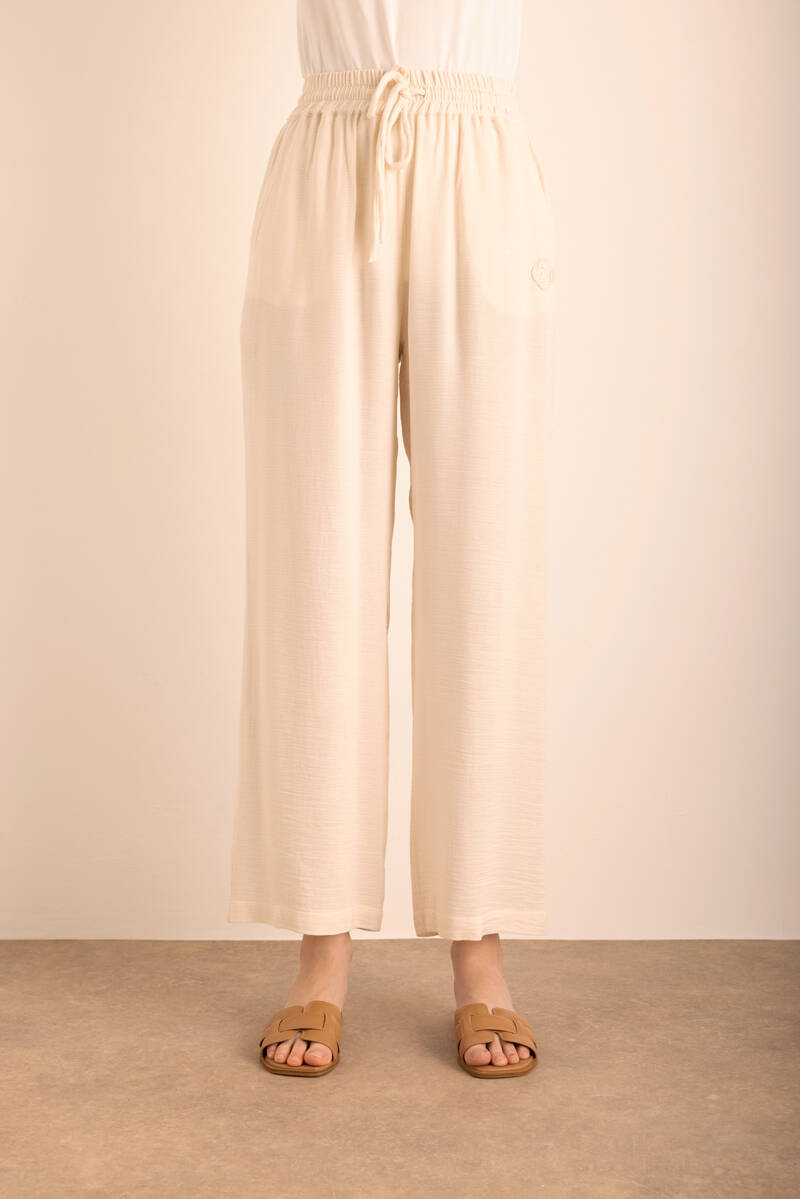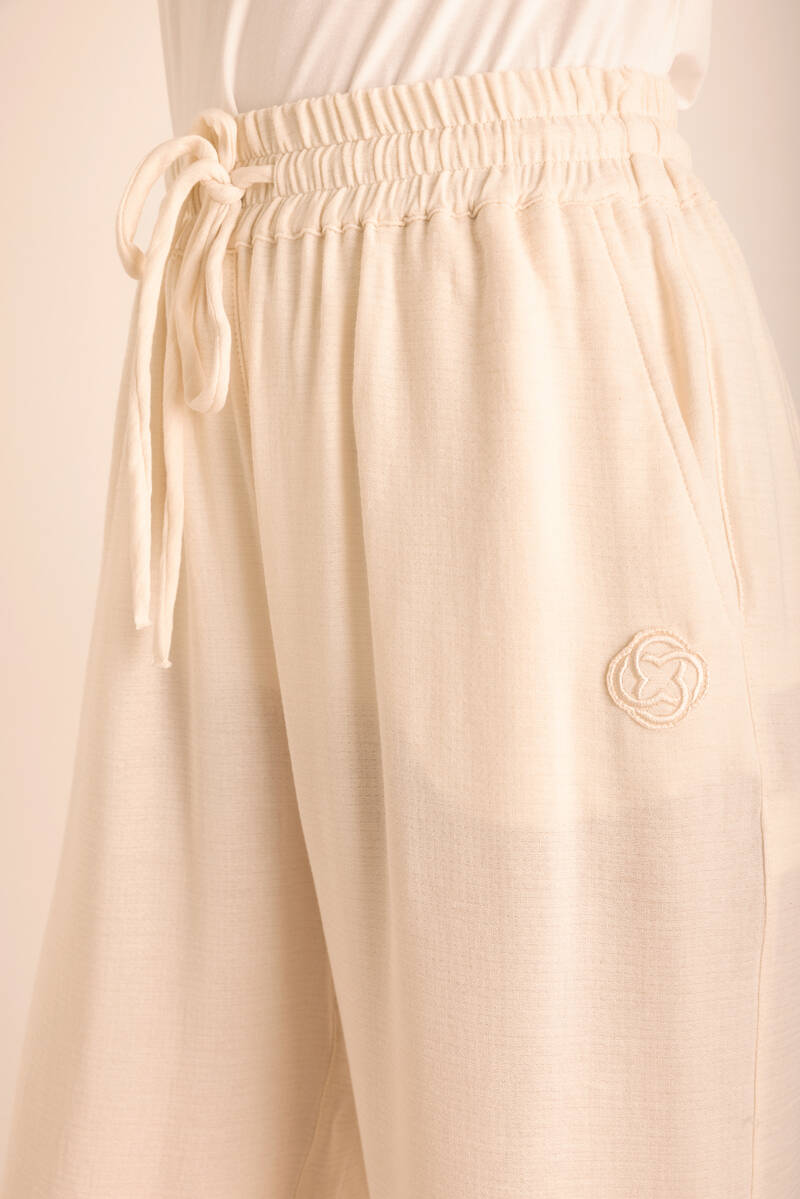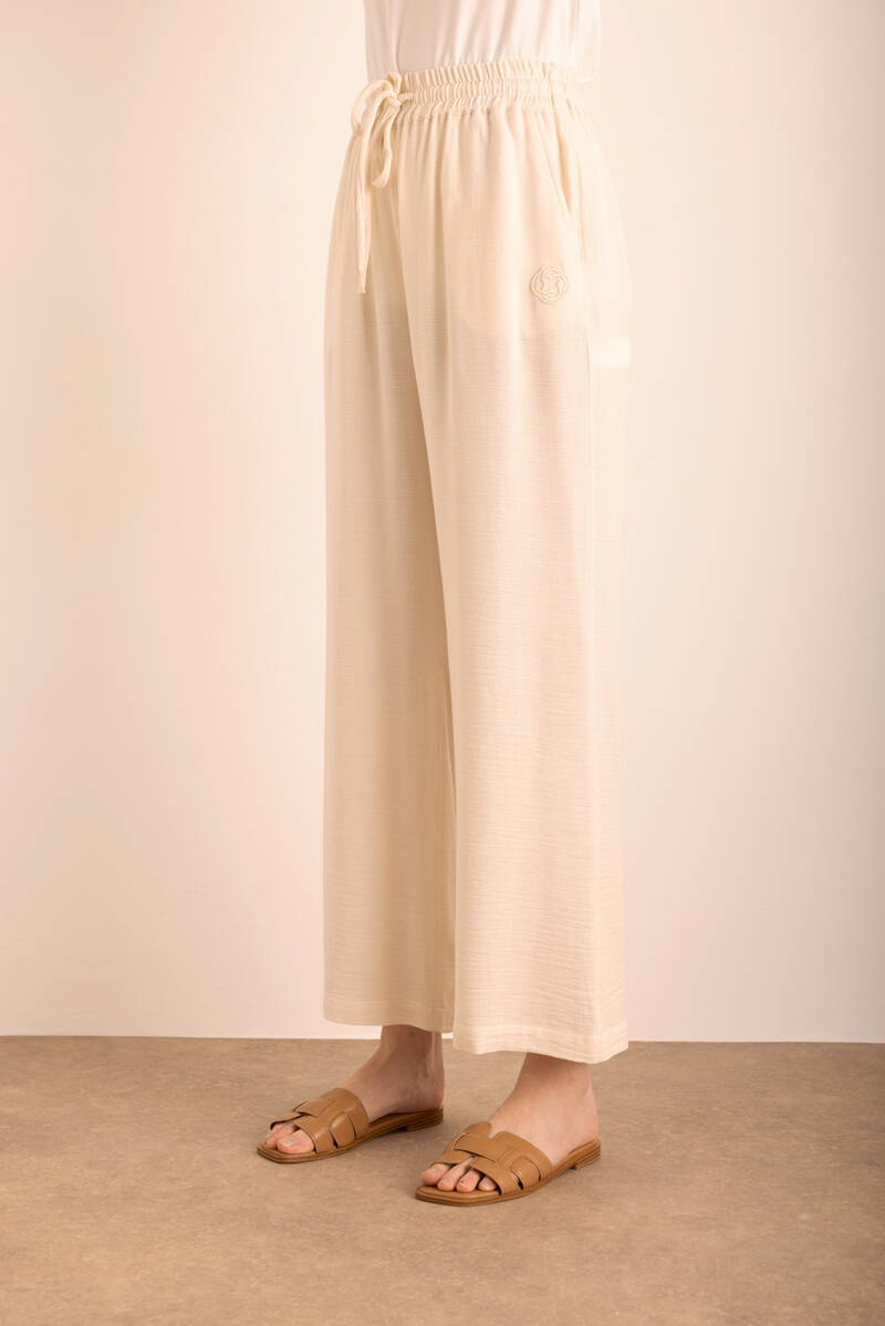 Ekru Beli Lastikli Viscon Cotton Pijama Altı