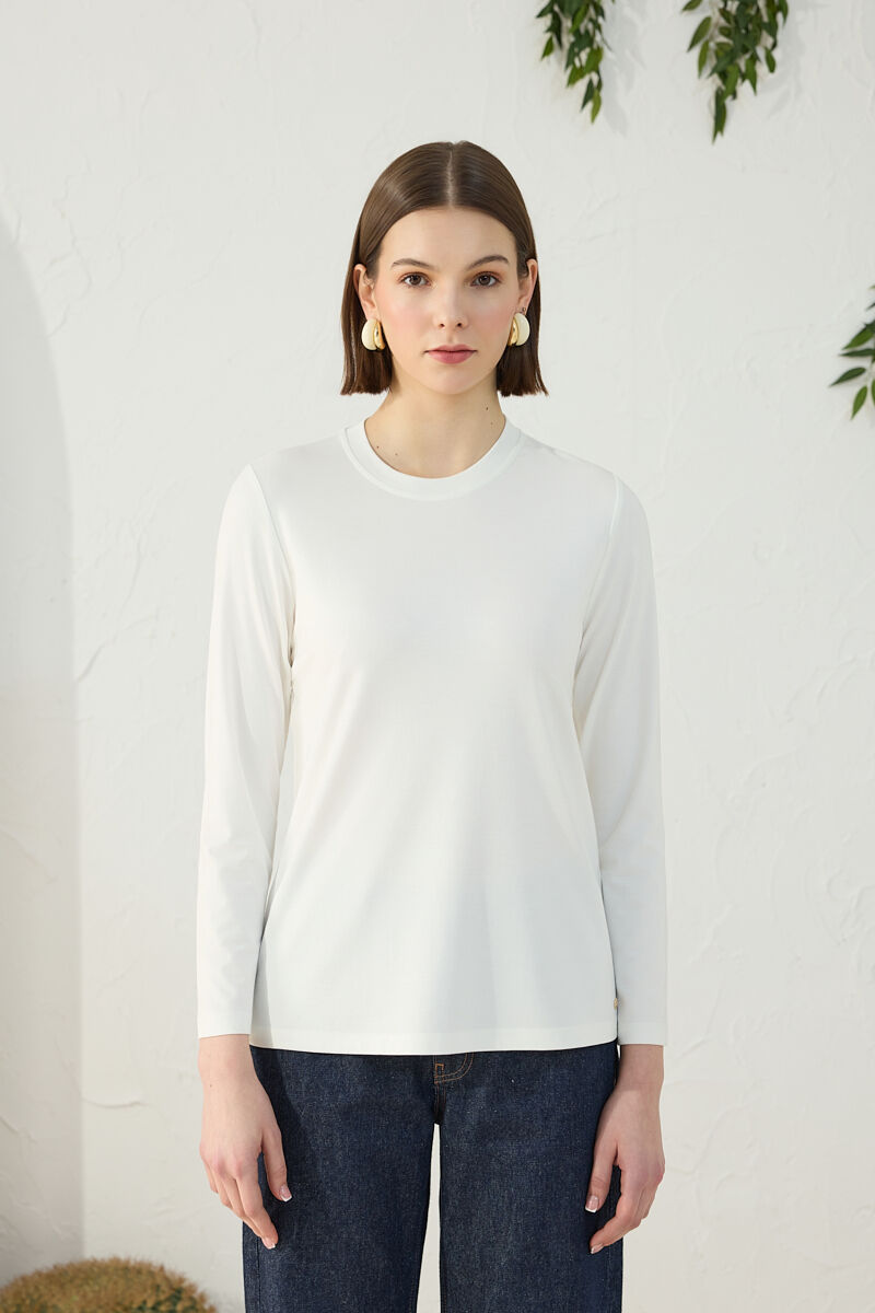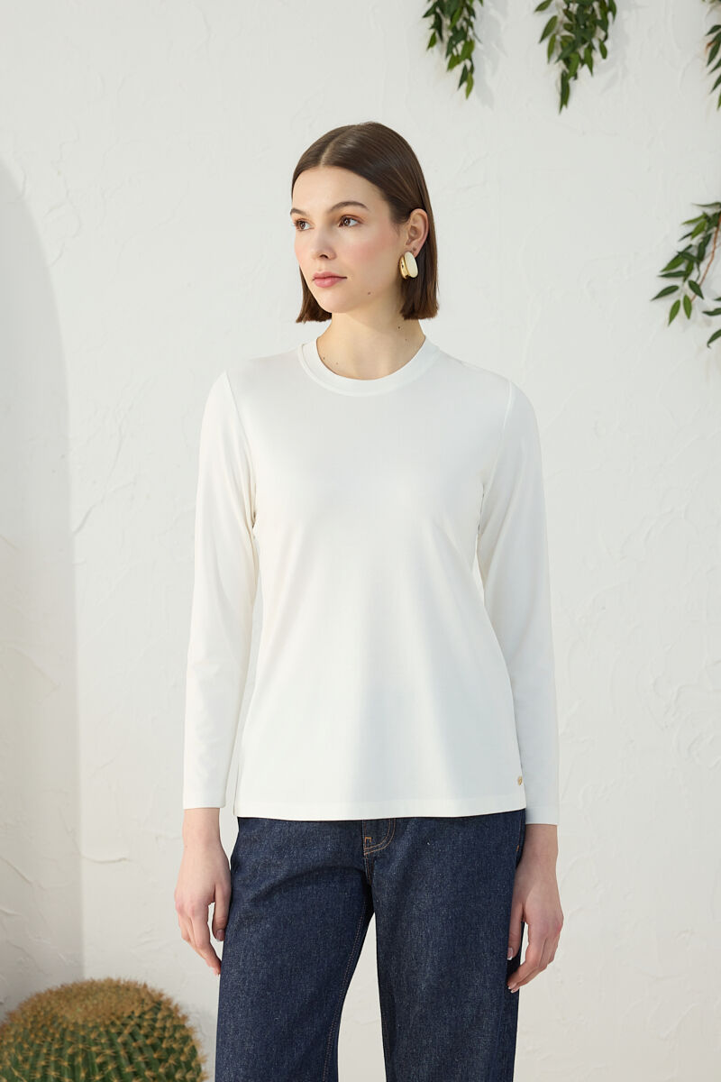 Ekru Basic Rayon T-Shırt