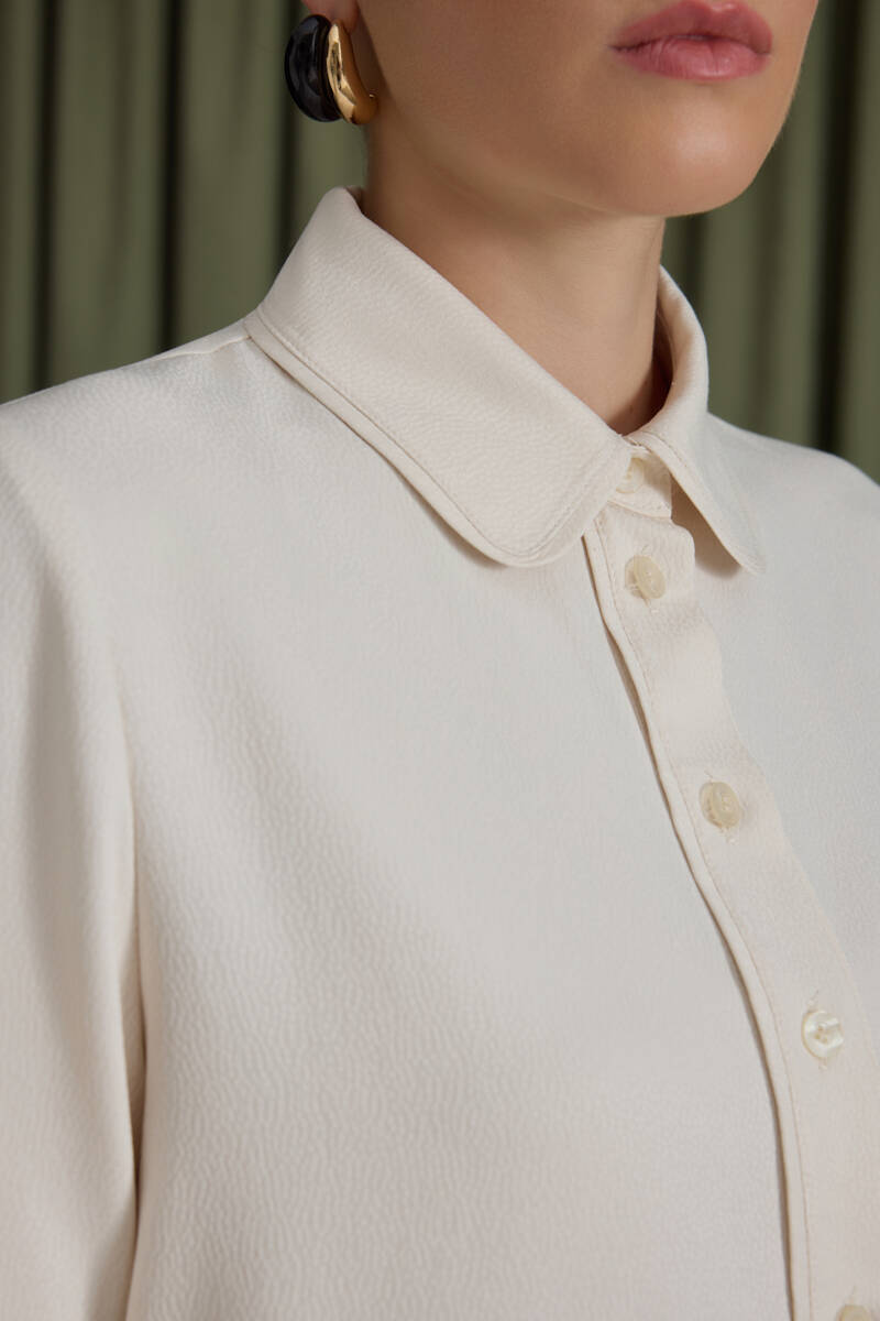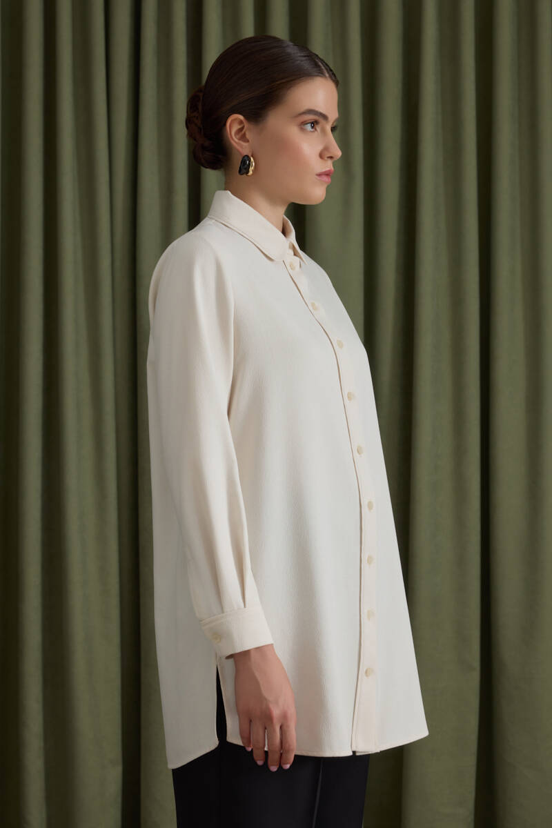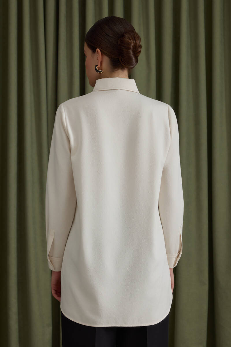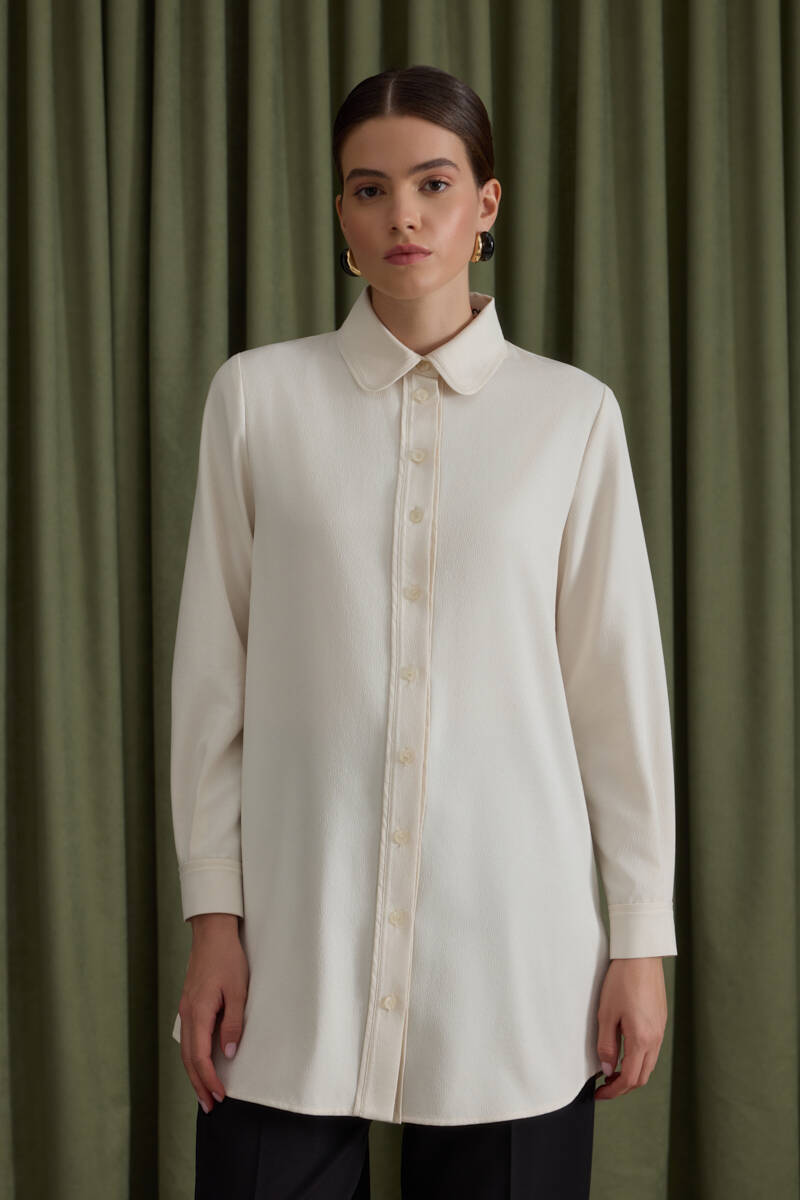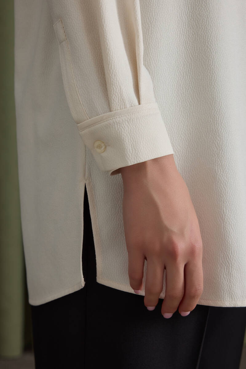 Ekru Kol Ucu Dikiş Detaylı Viscon Tunik
