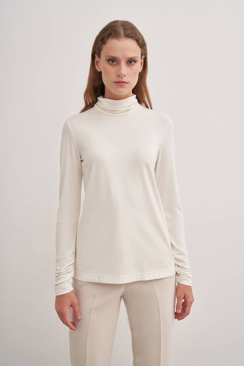 Ekru Katlama Detaylı Bluz
