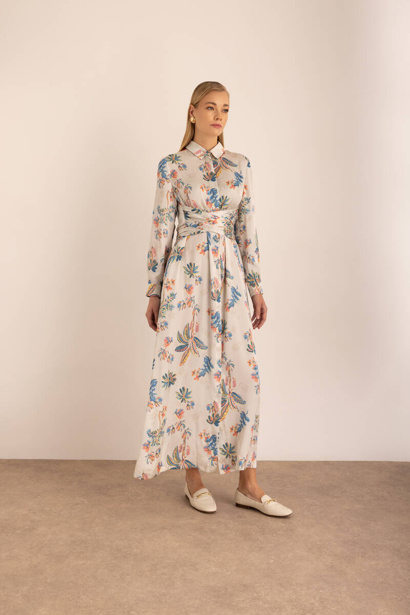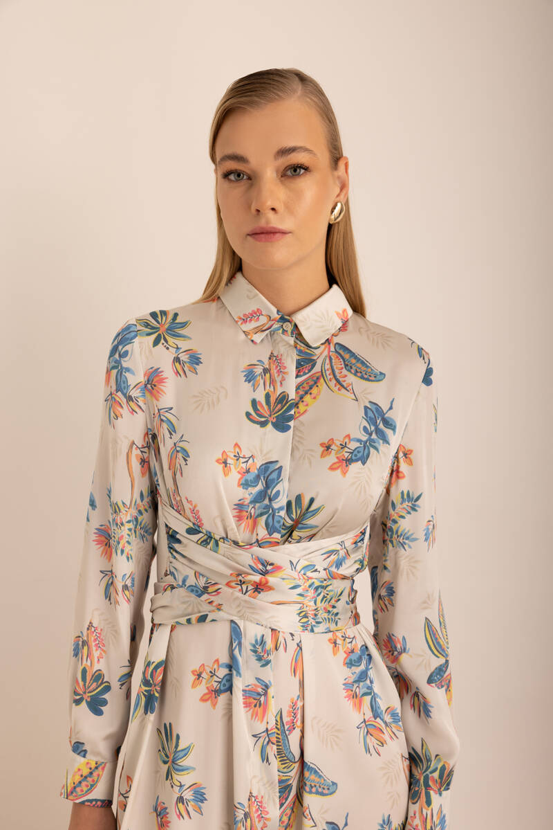 Ekru Kumaşı Püskül Yüzeyli Cotton Gömlek Elbise