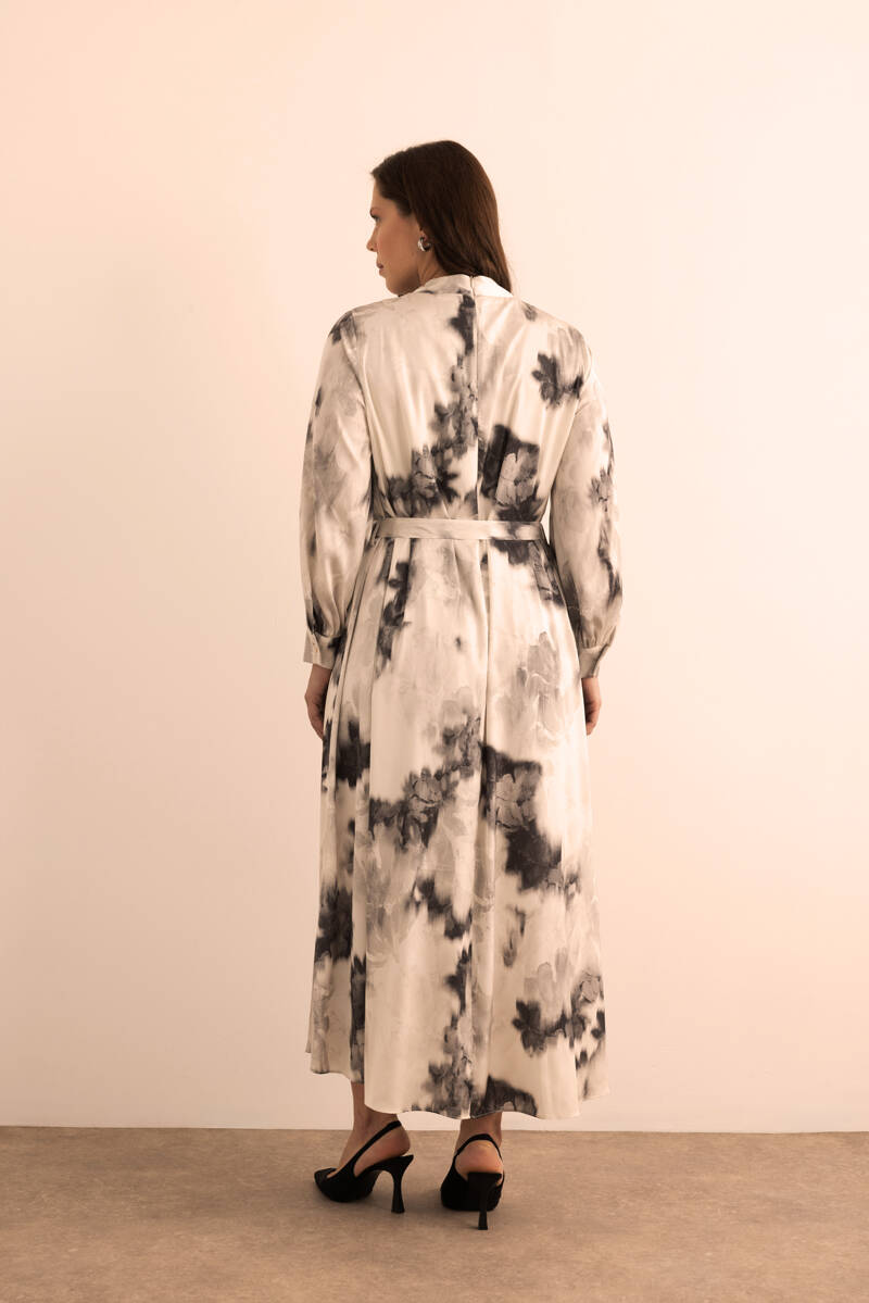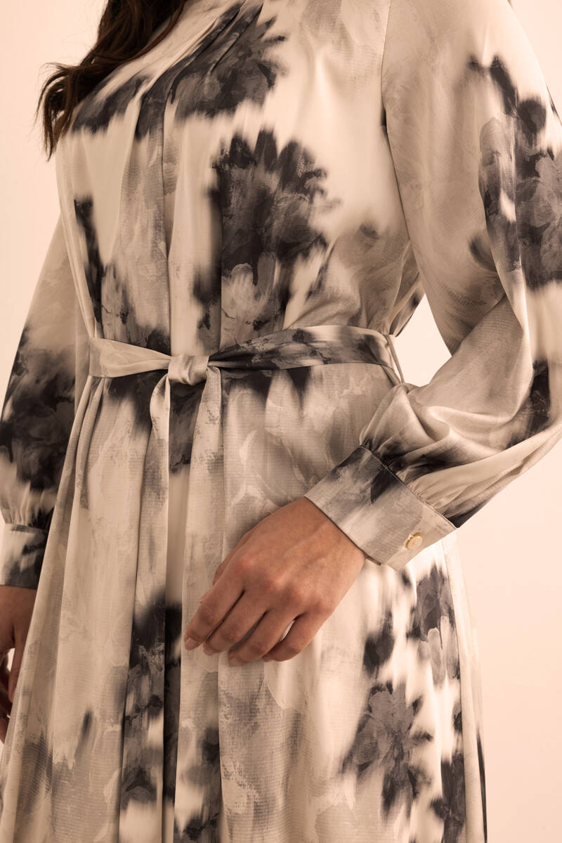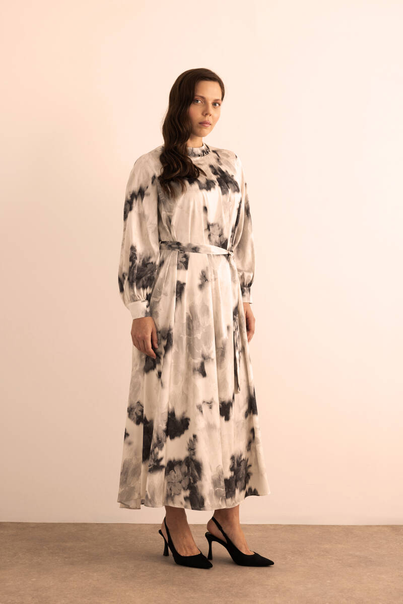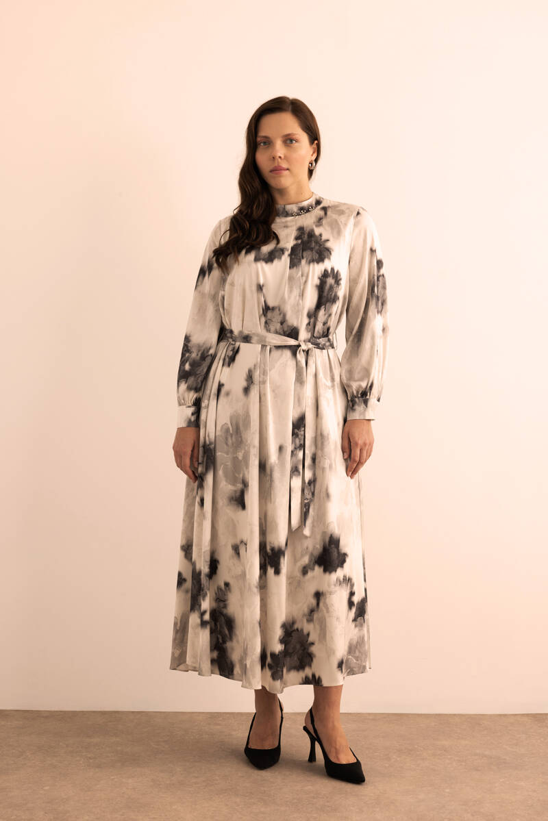 Ekru Desenli Elbise