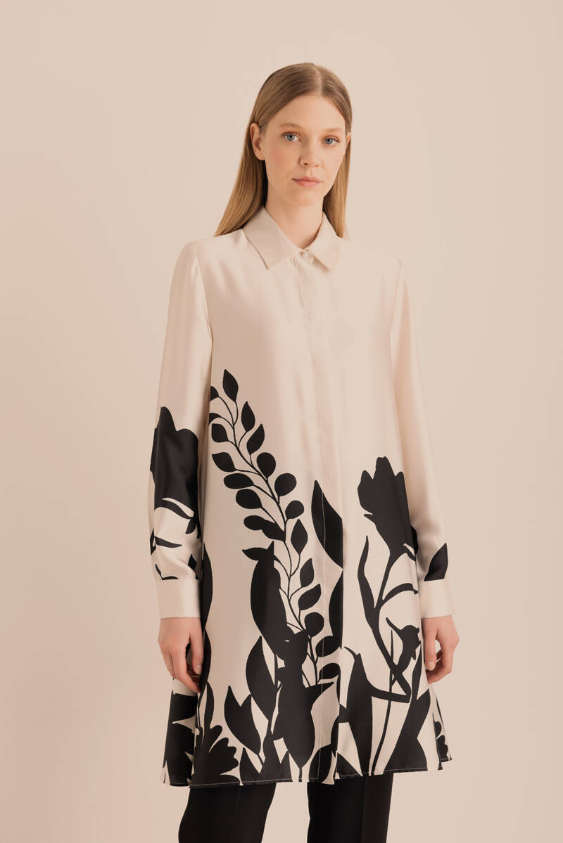 Ekru Kolları Brode Rayon Viscon Tunik