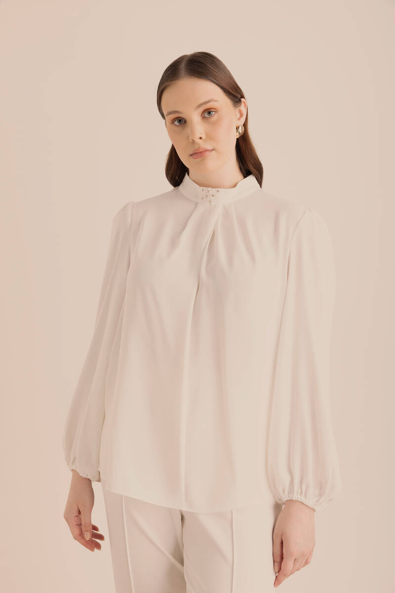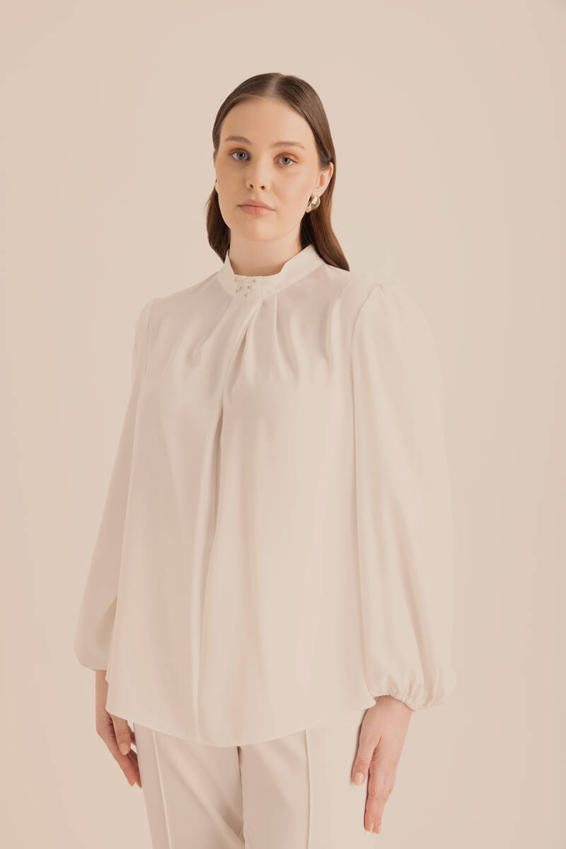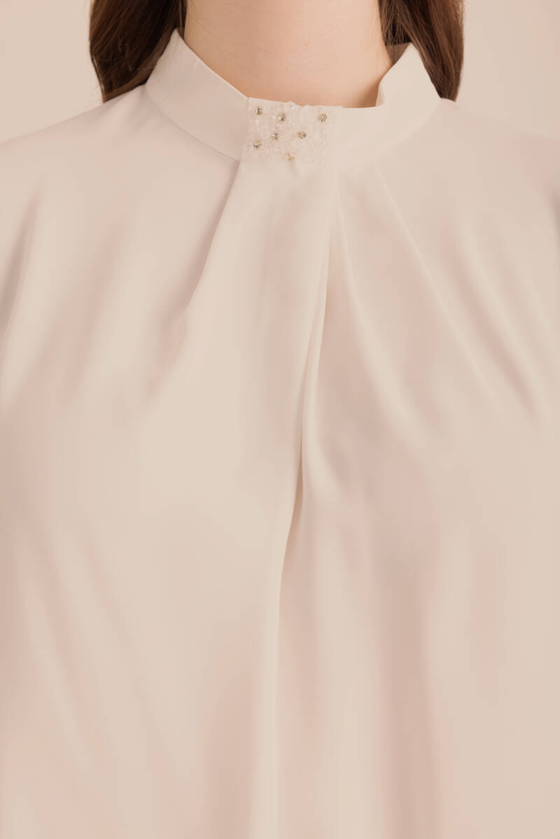 Pembe Yakası Pili ve İşleme Detaylı Dokuma Bluz
