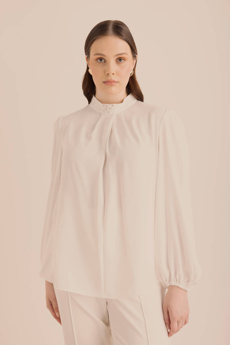 Ekru Dokulu Kumaştan Detaylı Kap