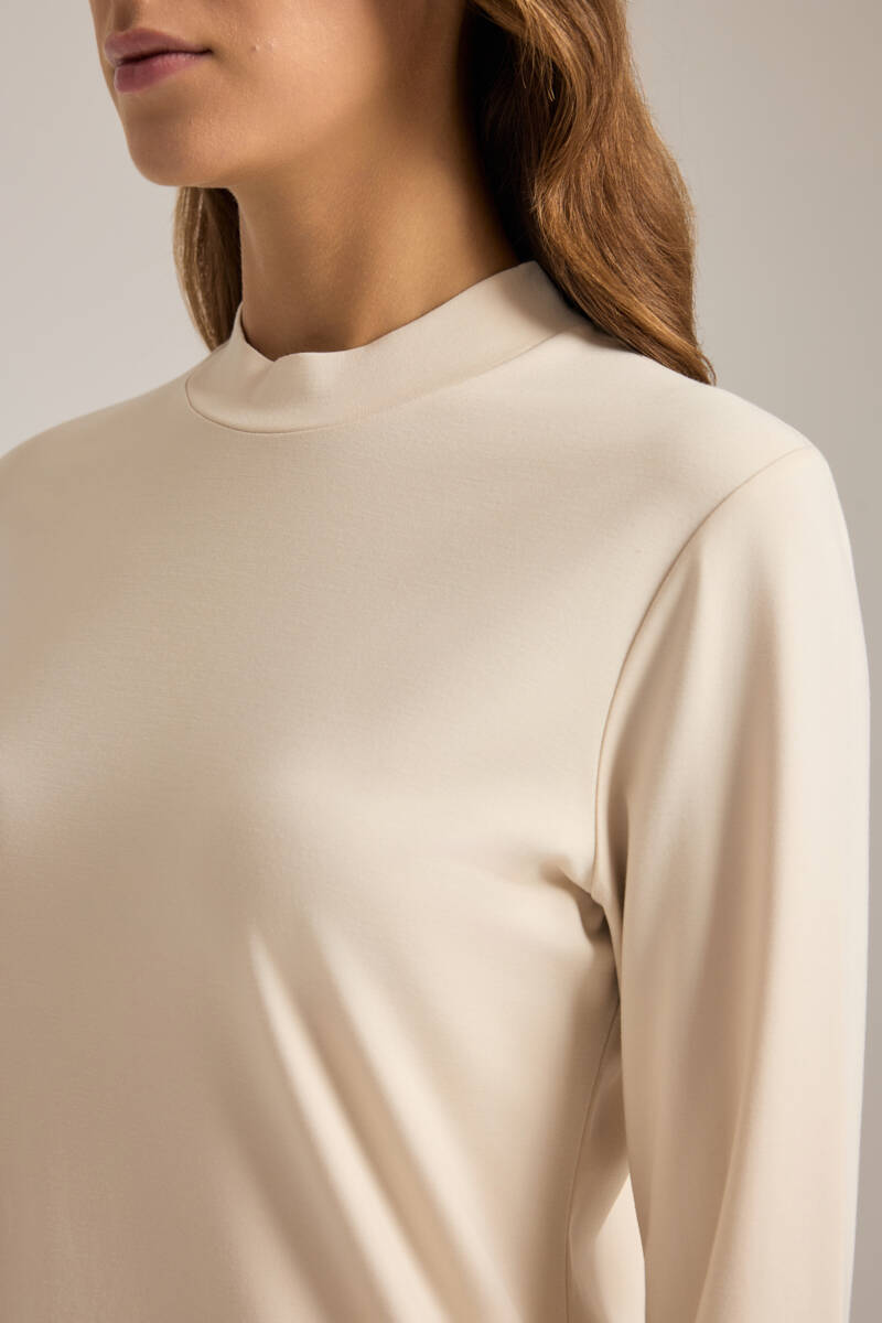 Ekru Omuzları Büzgü Detaylı Dokuma Kolsuz Bluz
