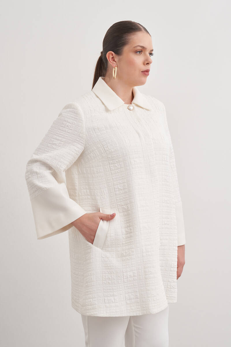 Ekru Dokulu Kumaştan Detaylı Kap