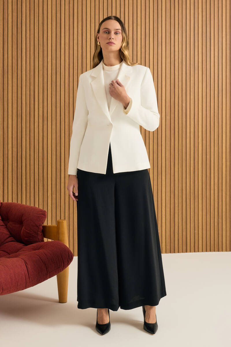 Ekru Sıfır Yaka Metal Düğmeli Şık Ceket