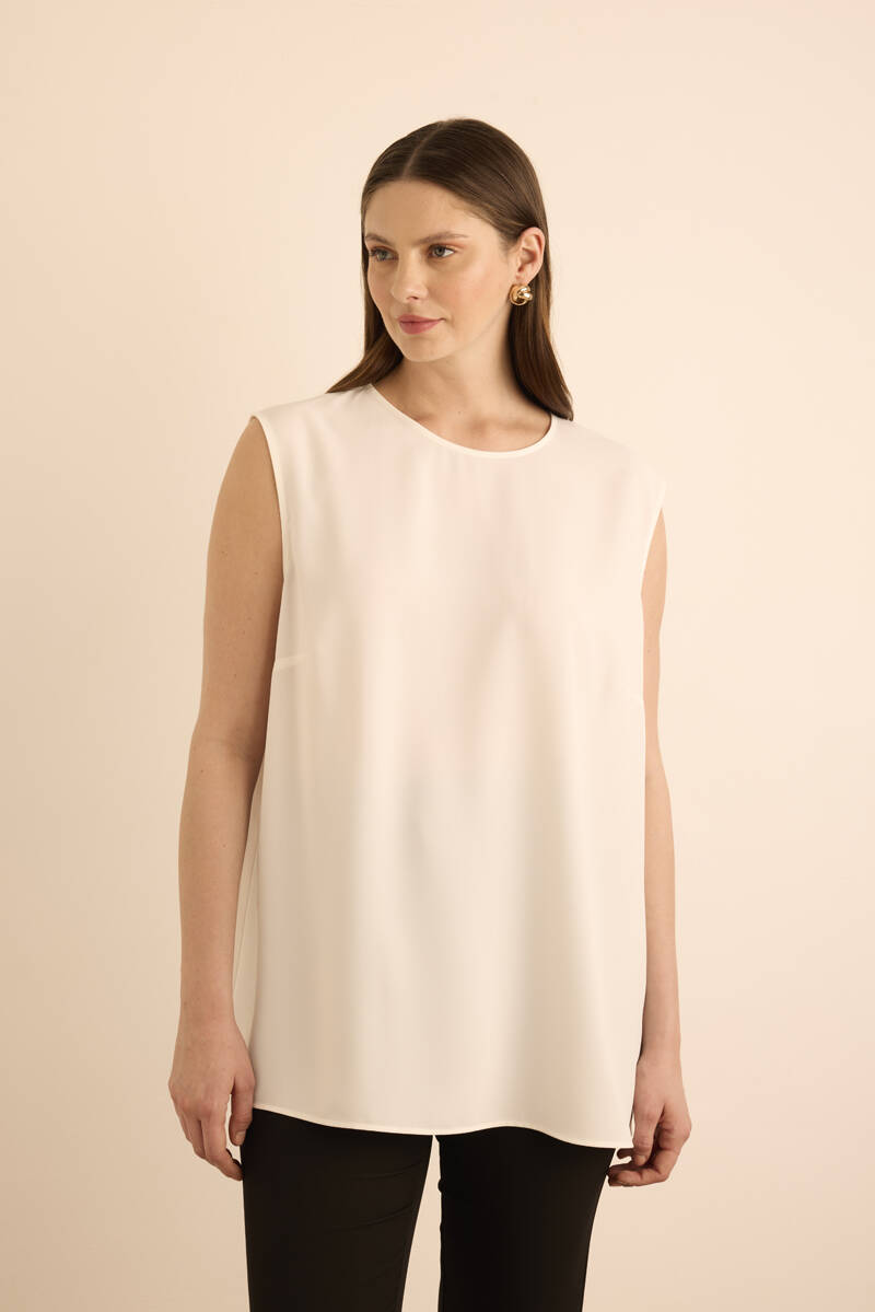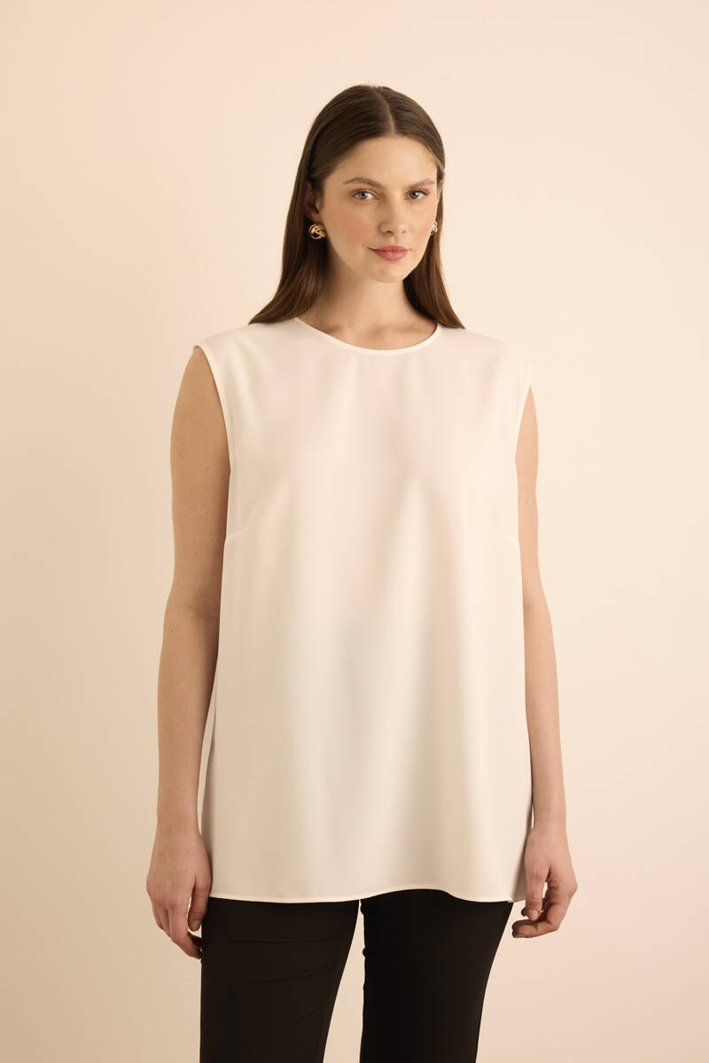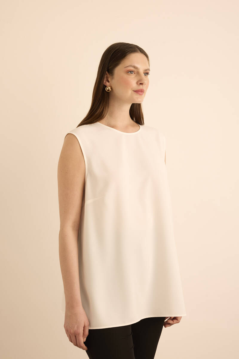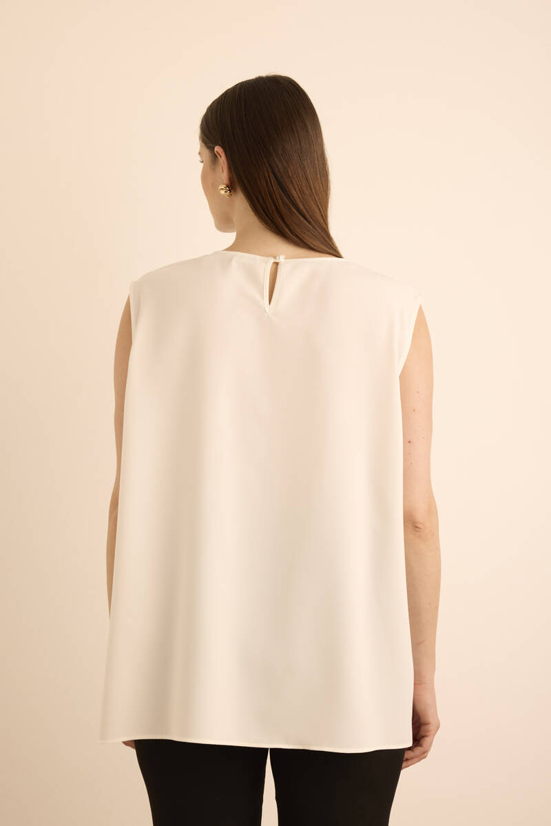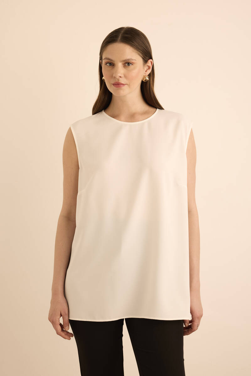 Taş Bisiklet Yaka Kolsuz Keten Bluz