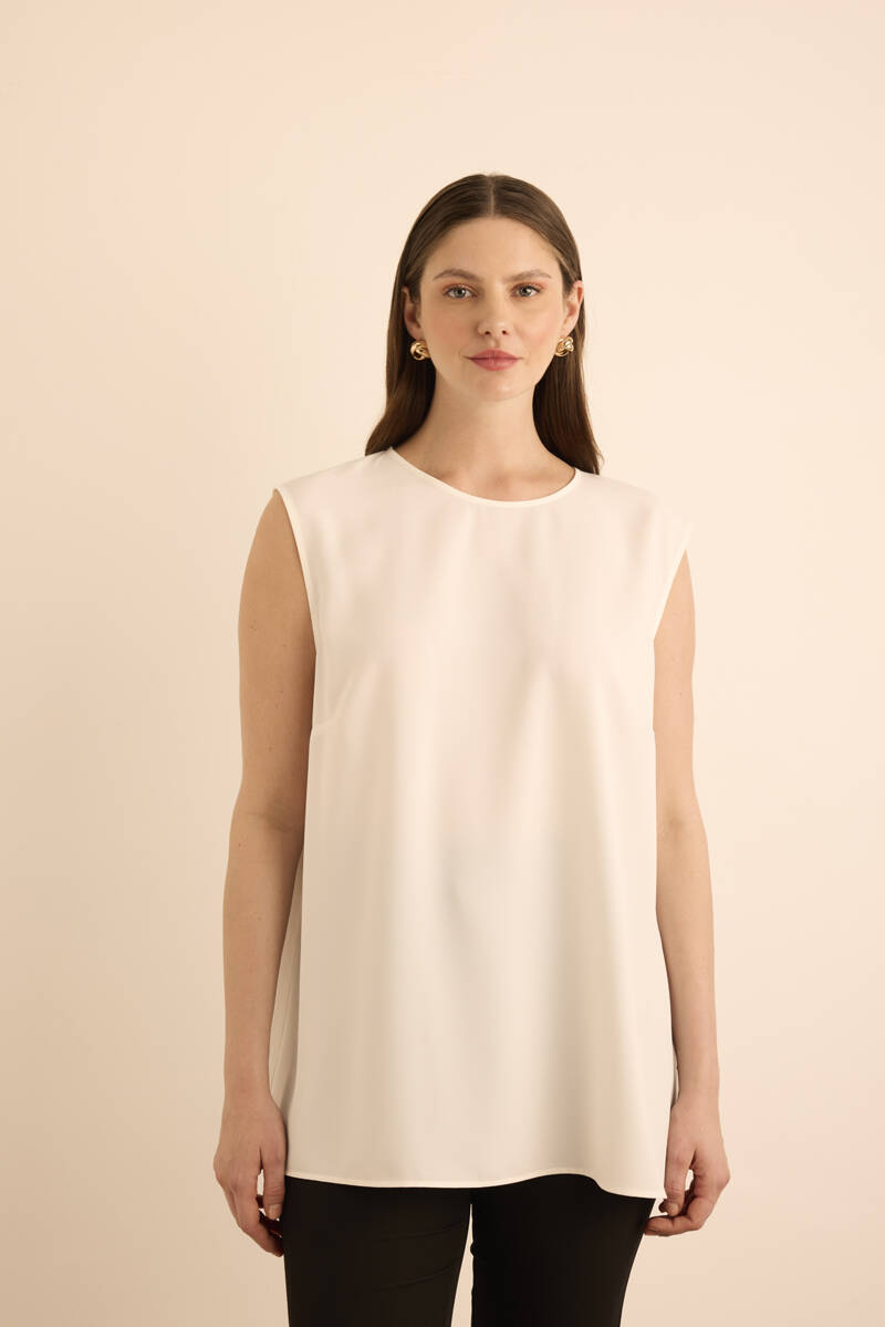 Taş Keten Kolsuz Bluz