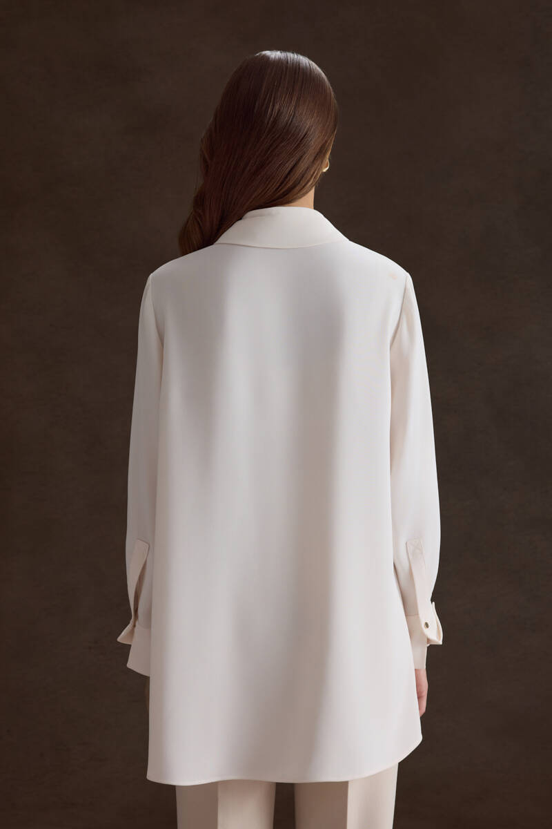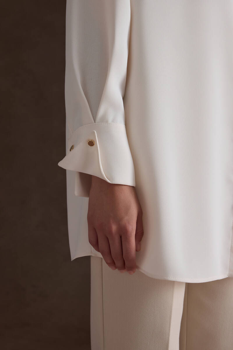 Ekru Kol Ucu Dikiş Detaylı Viscon Tunik