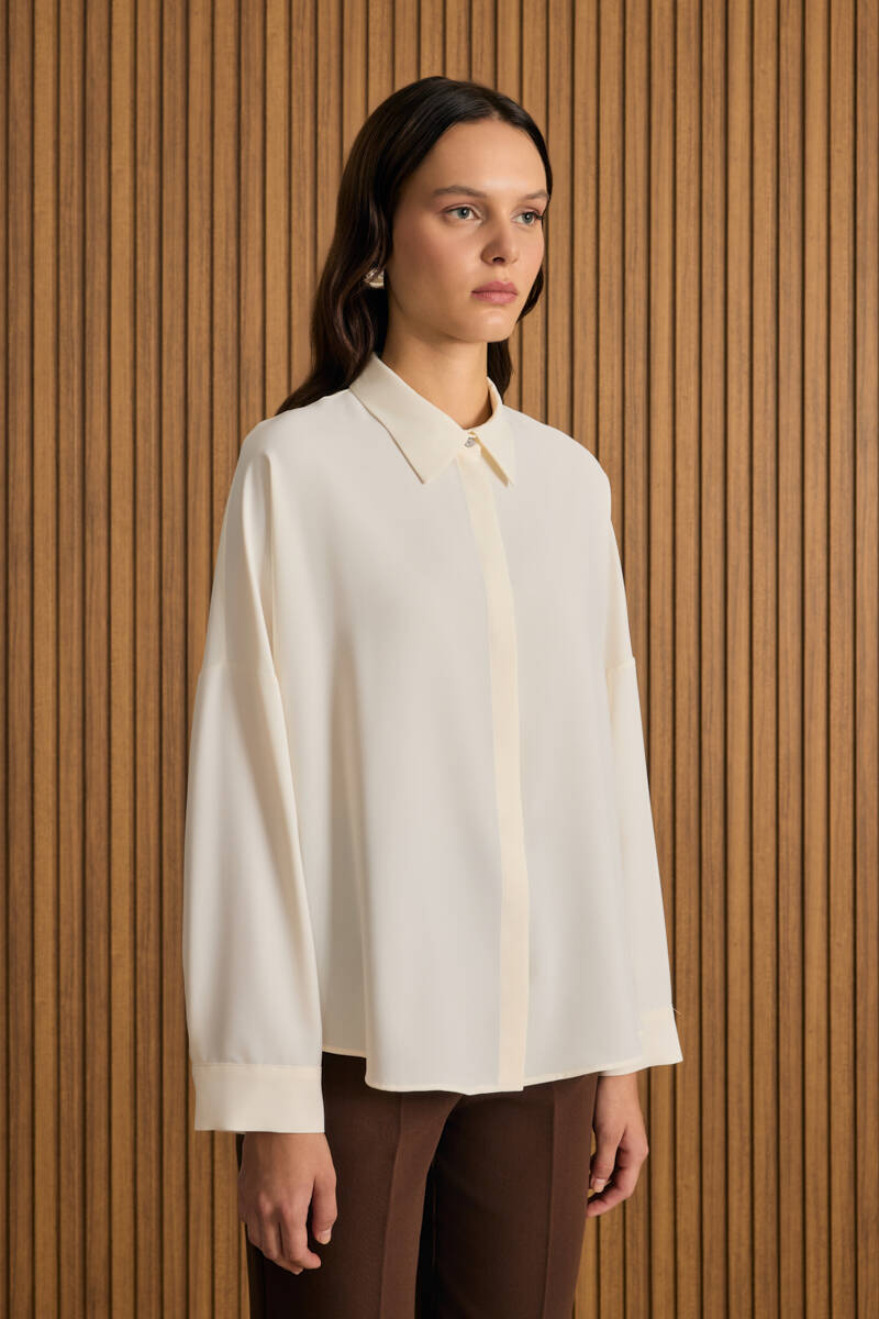 Saks Ön Göğüs Kısmı Pile ve Parça Detaylı Bluz