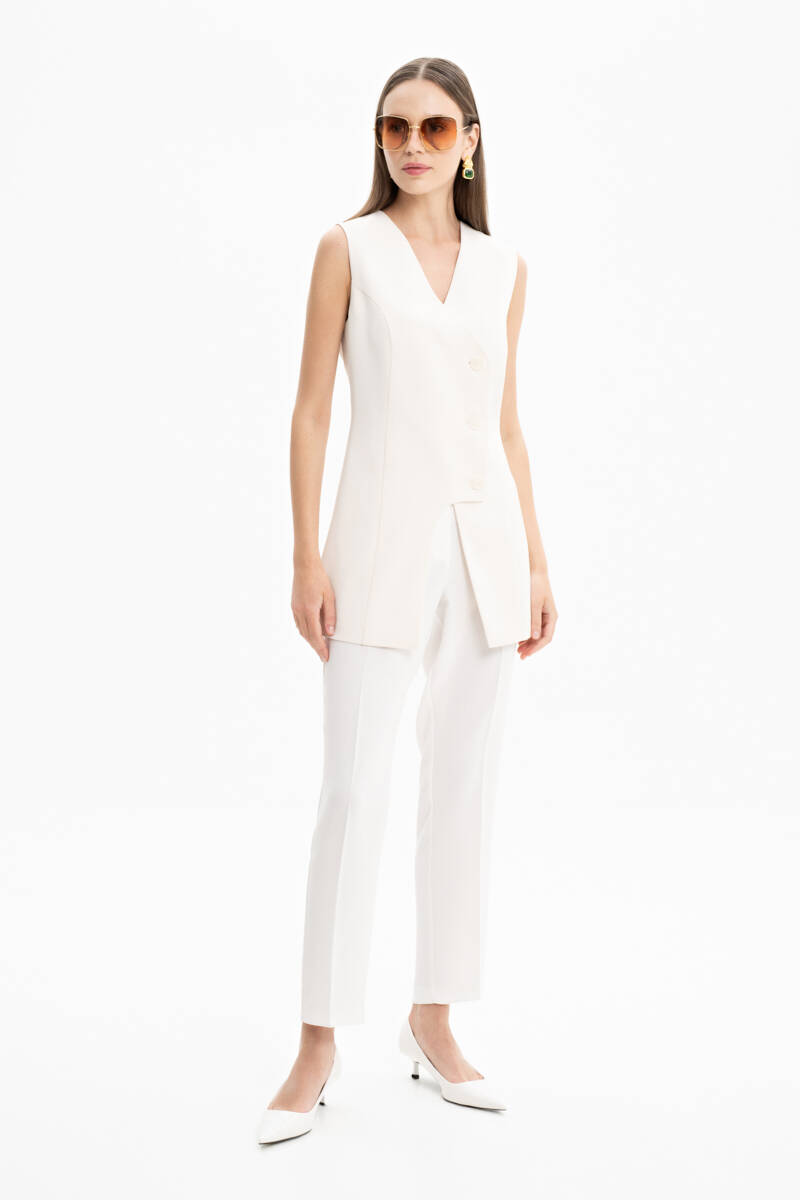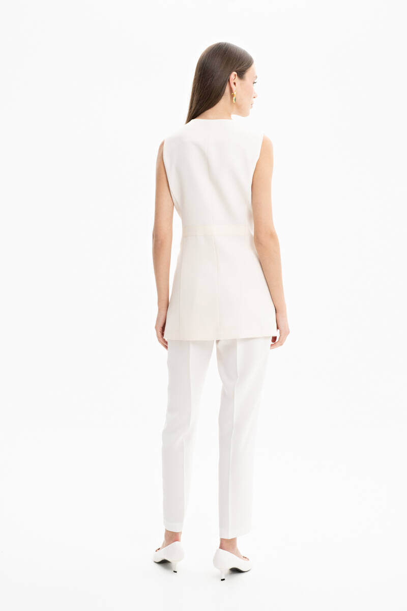 Ekru Fermuar Detaylı Poplin Yelek