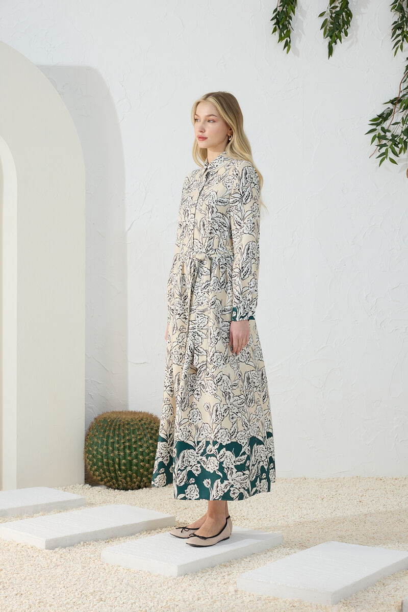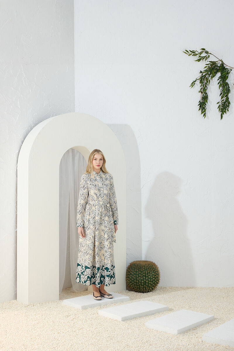 Ekru Kumaşı Püskül Yüzeyli Cotton Gömlek Elbise