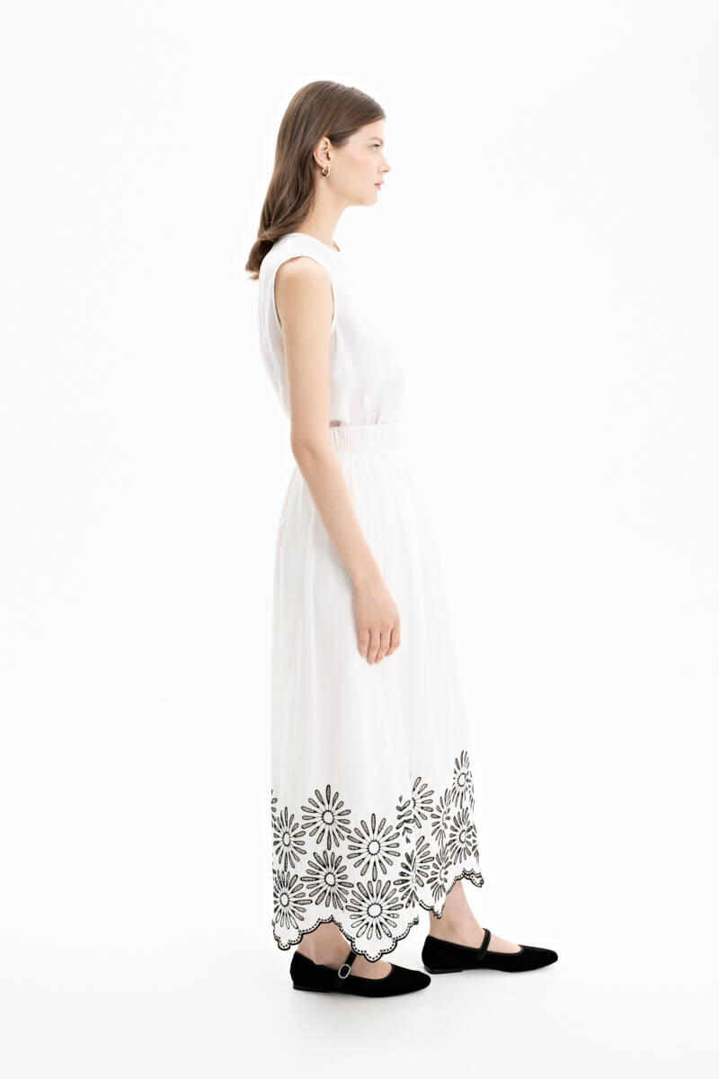 Ekru Etek Ucu İşlemeli Vual Etek