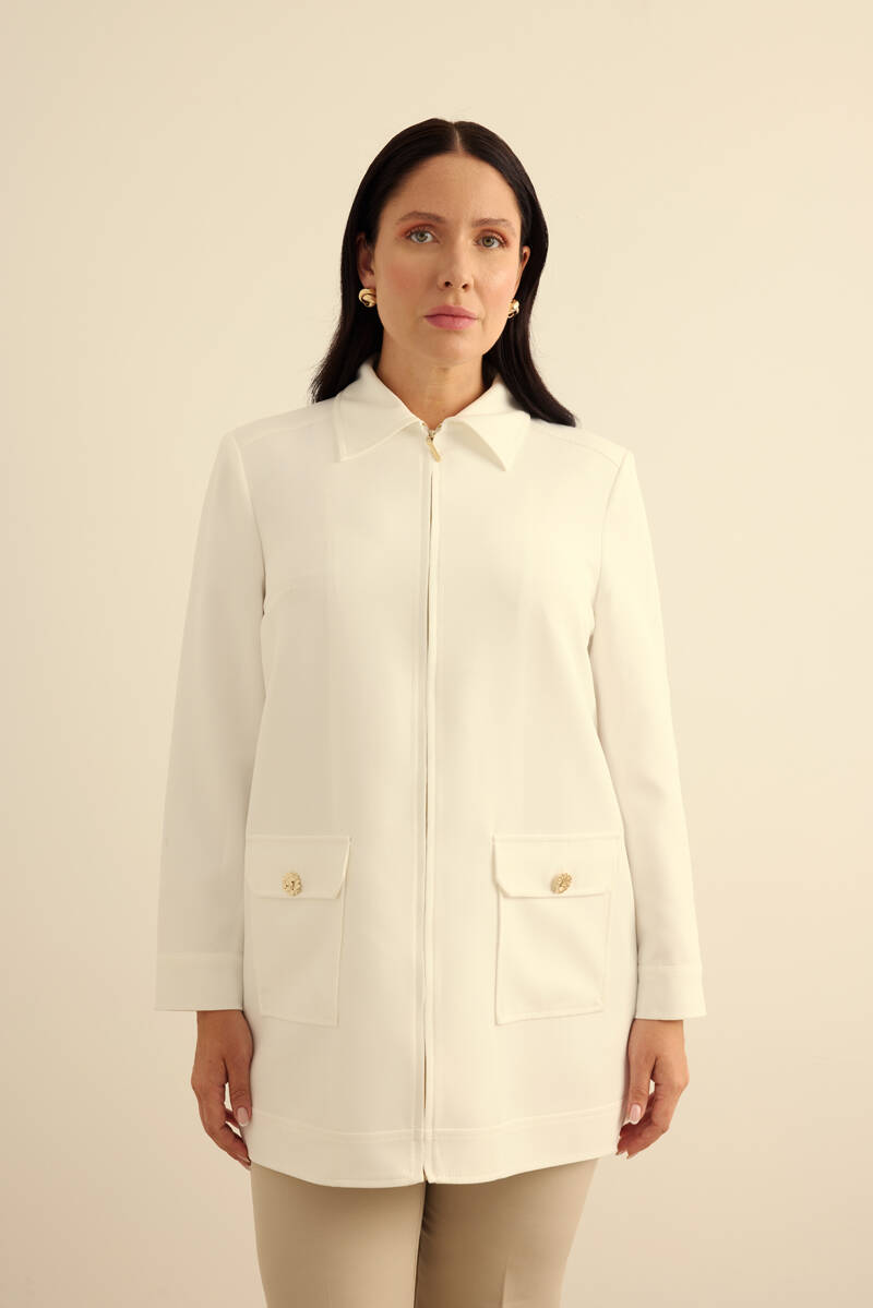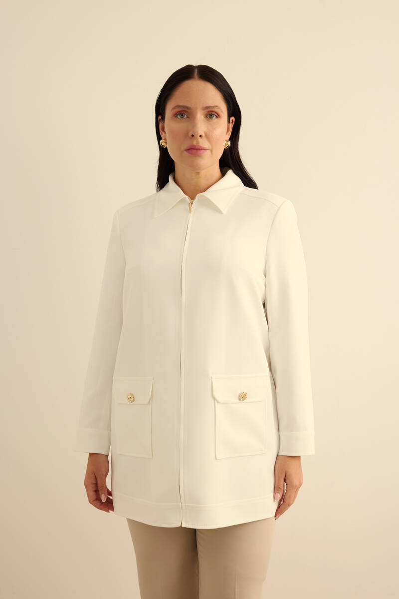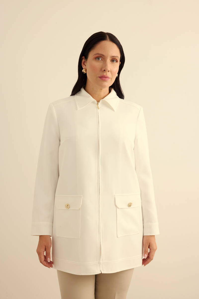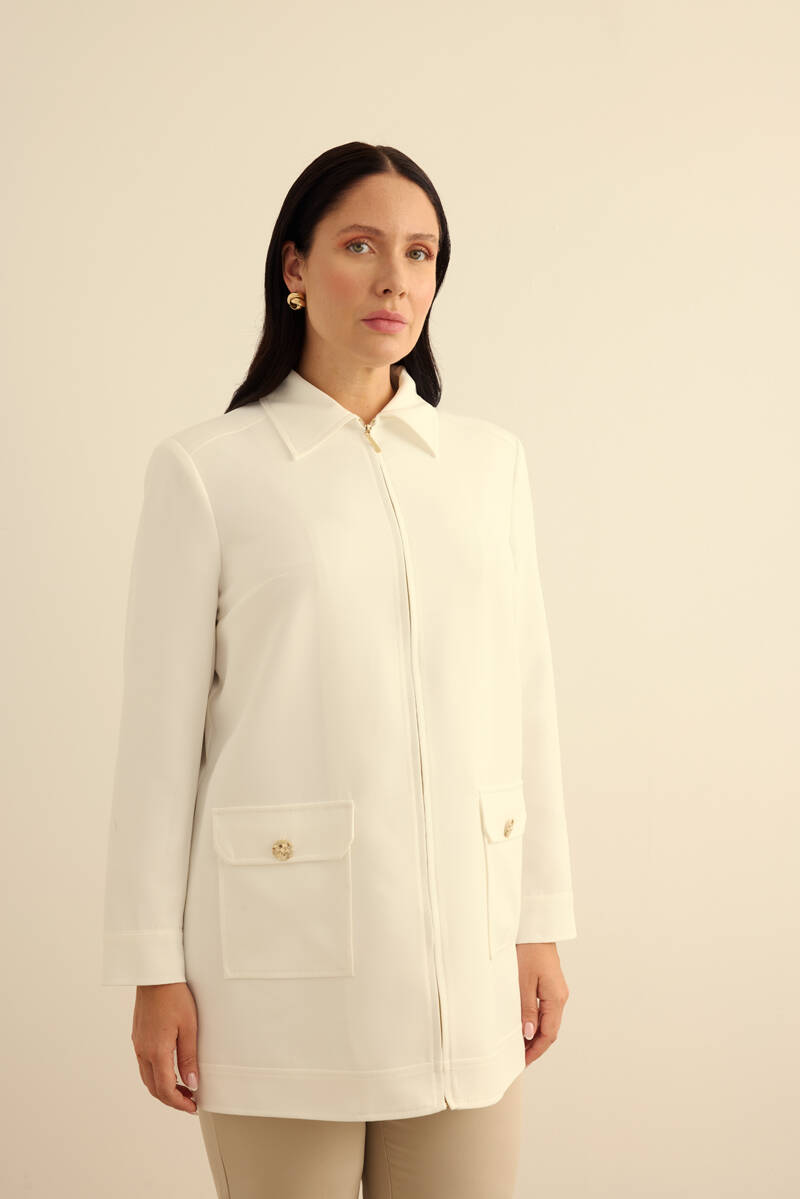 Ekru Fermuarlı , Cepli Dokuma Kap