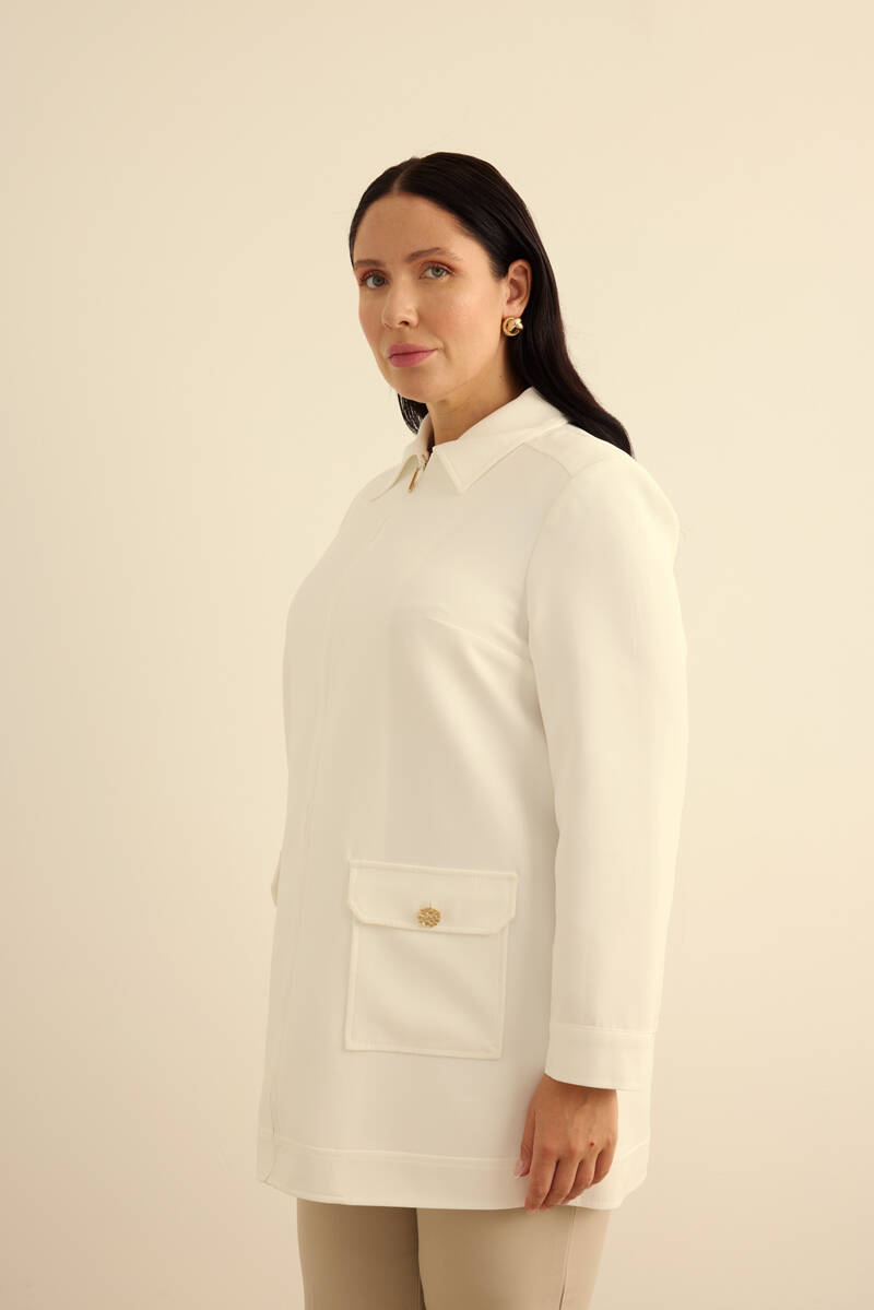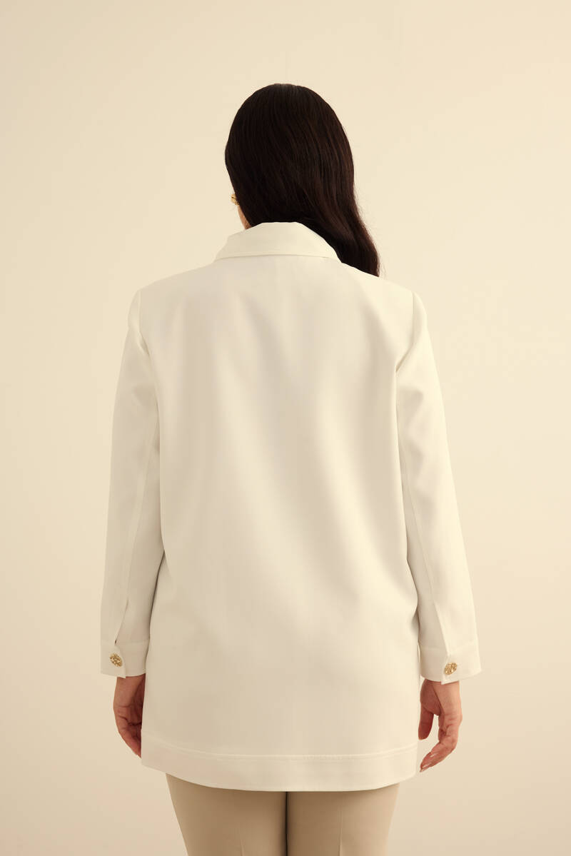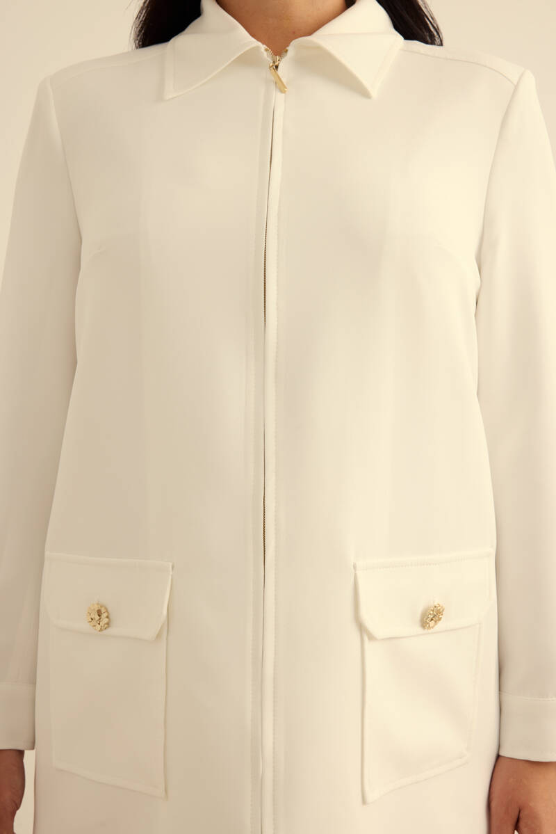 Ekru Yakası Taşlı Düğmeli Kap
