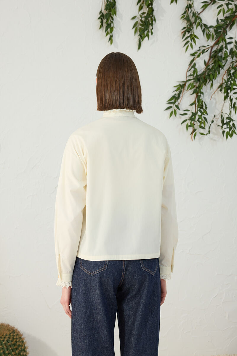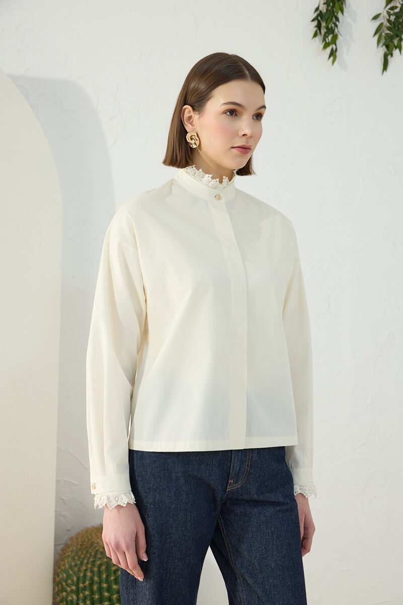 Beyaz Rahat Form Keten Bluz