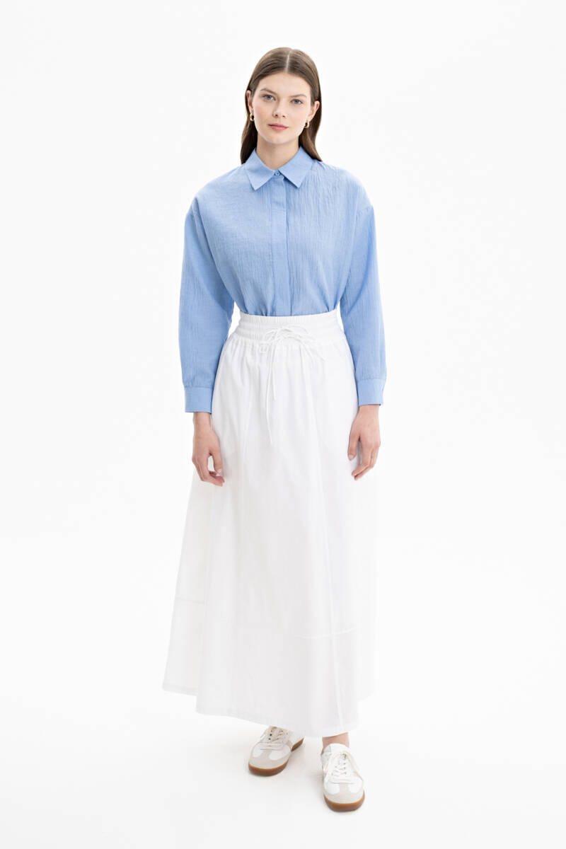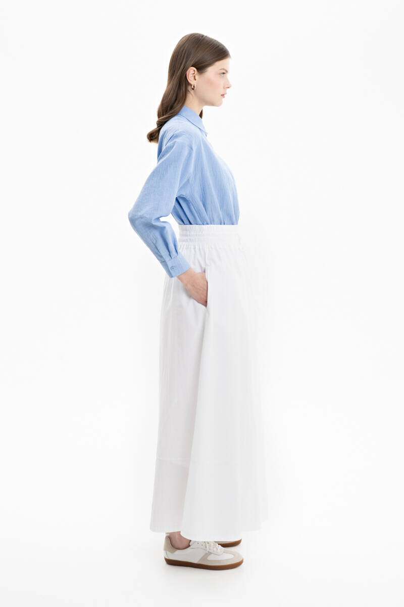 Ekru Geniş Kemerli Poplin Etek