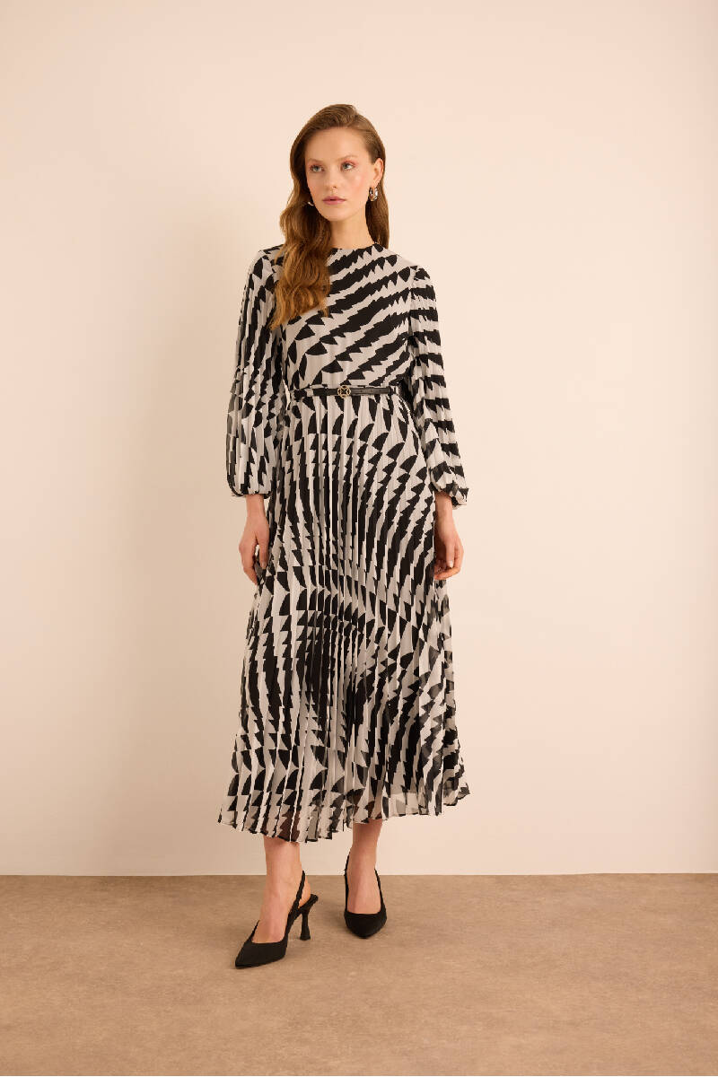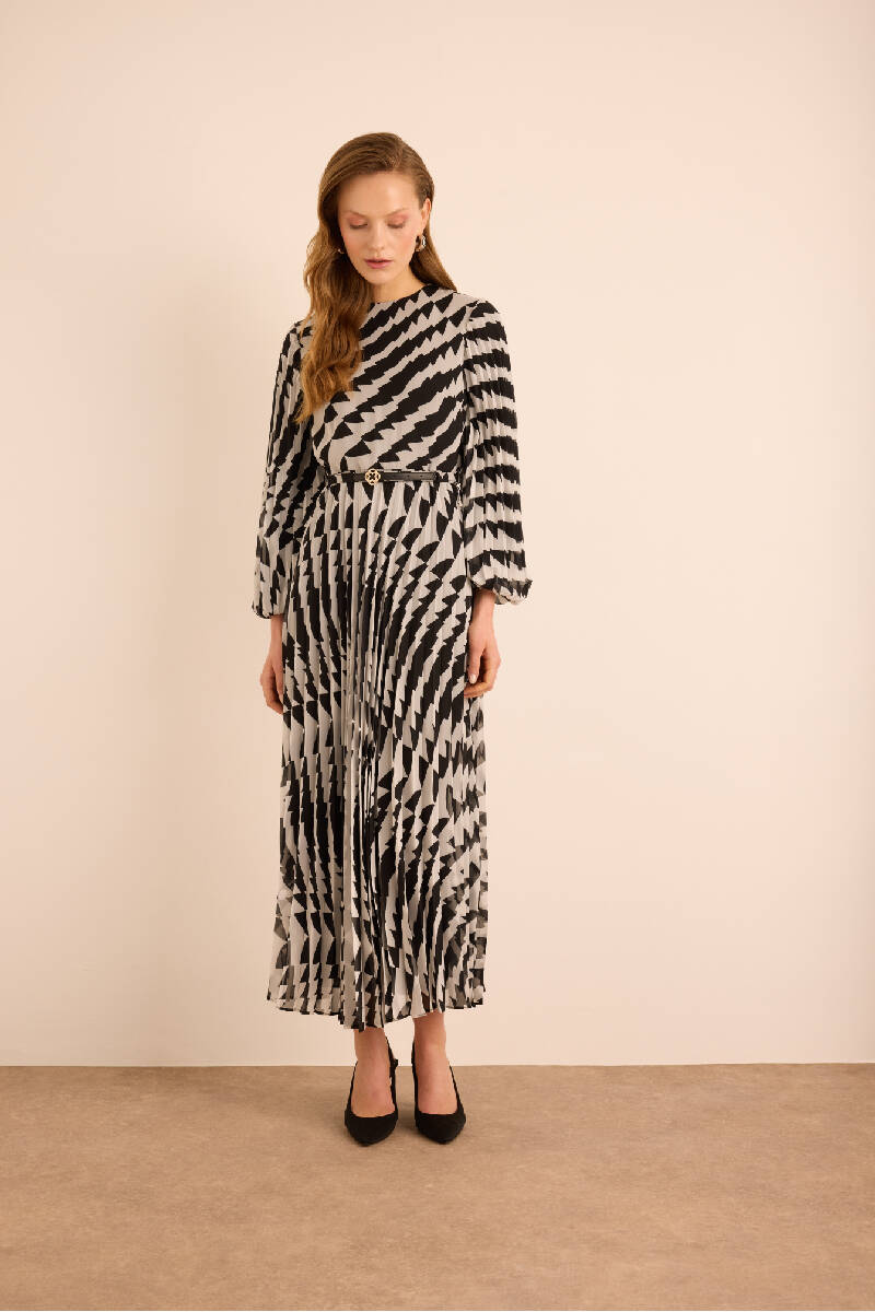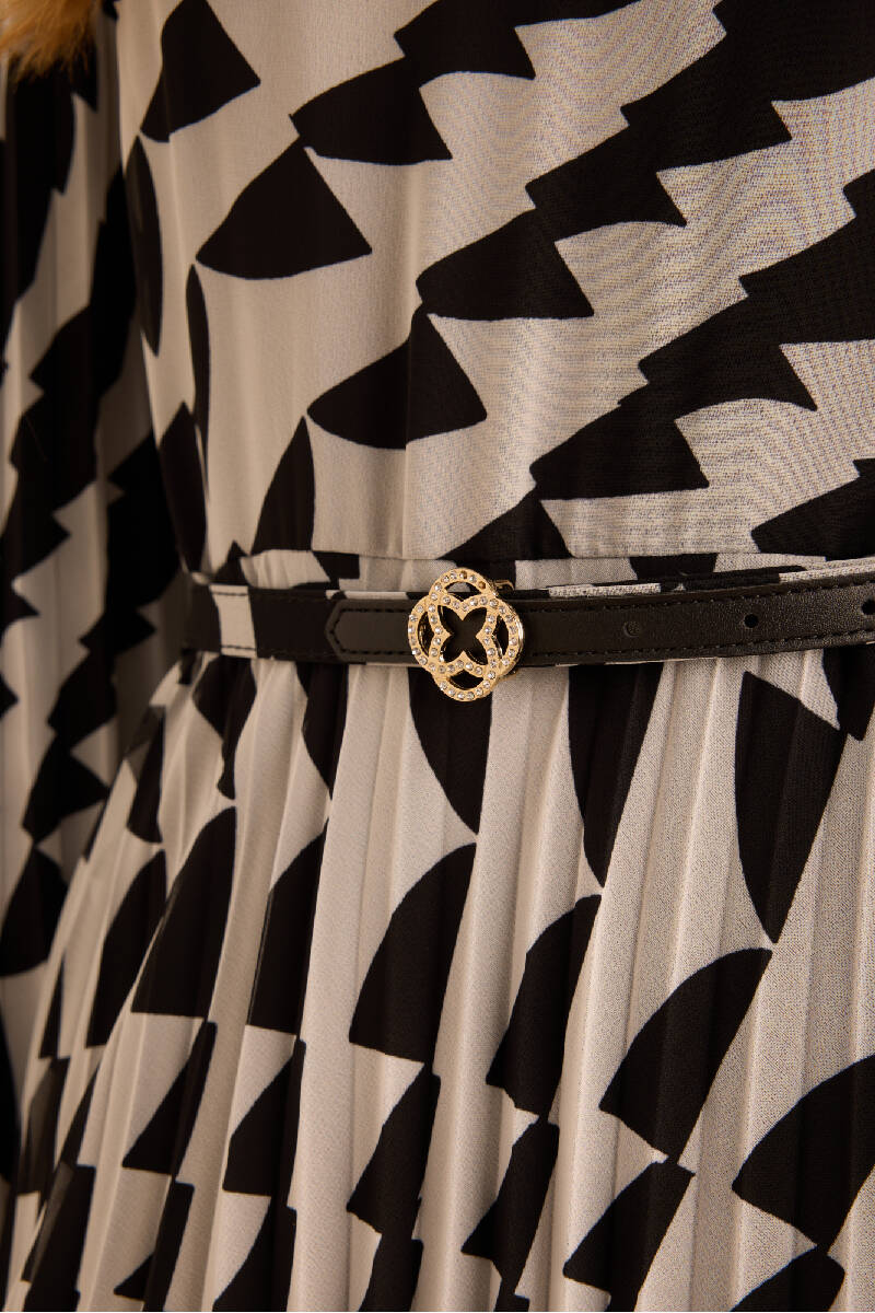 Somon Desenli Beli Bağlama Detaylı Elbise