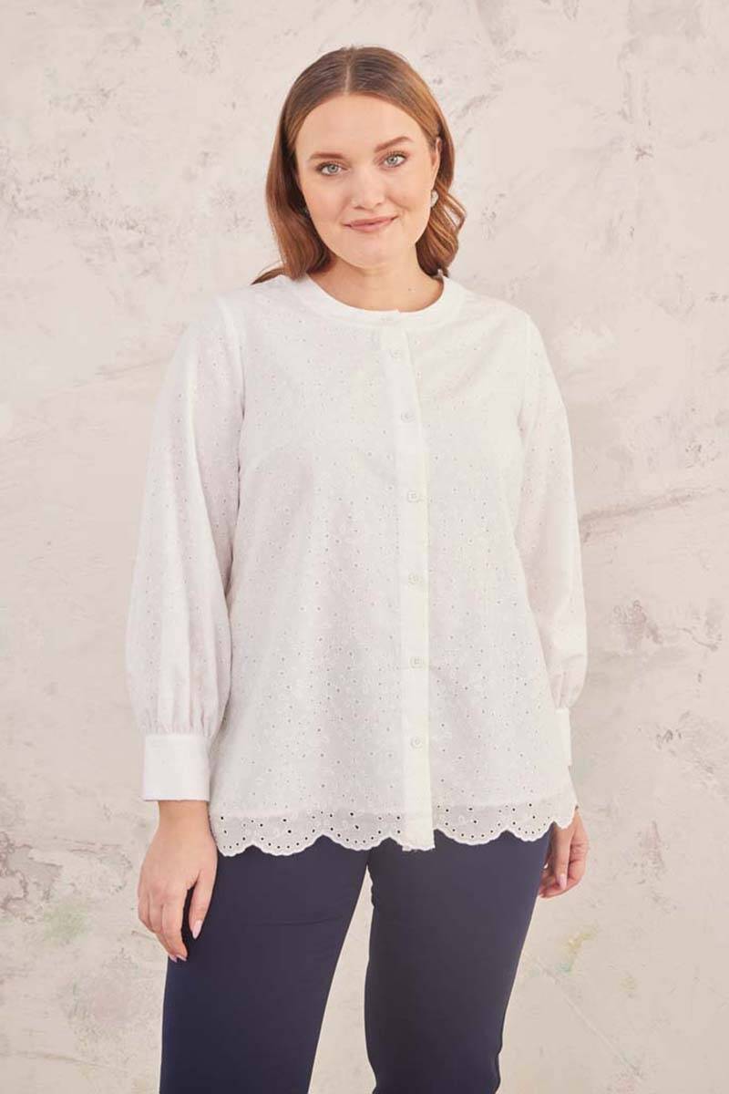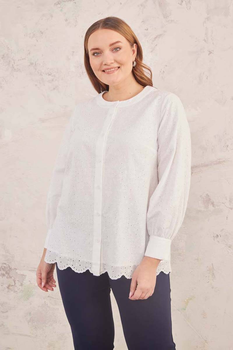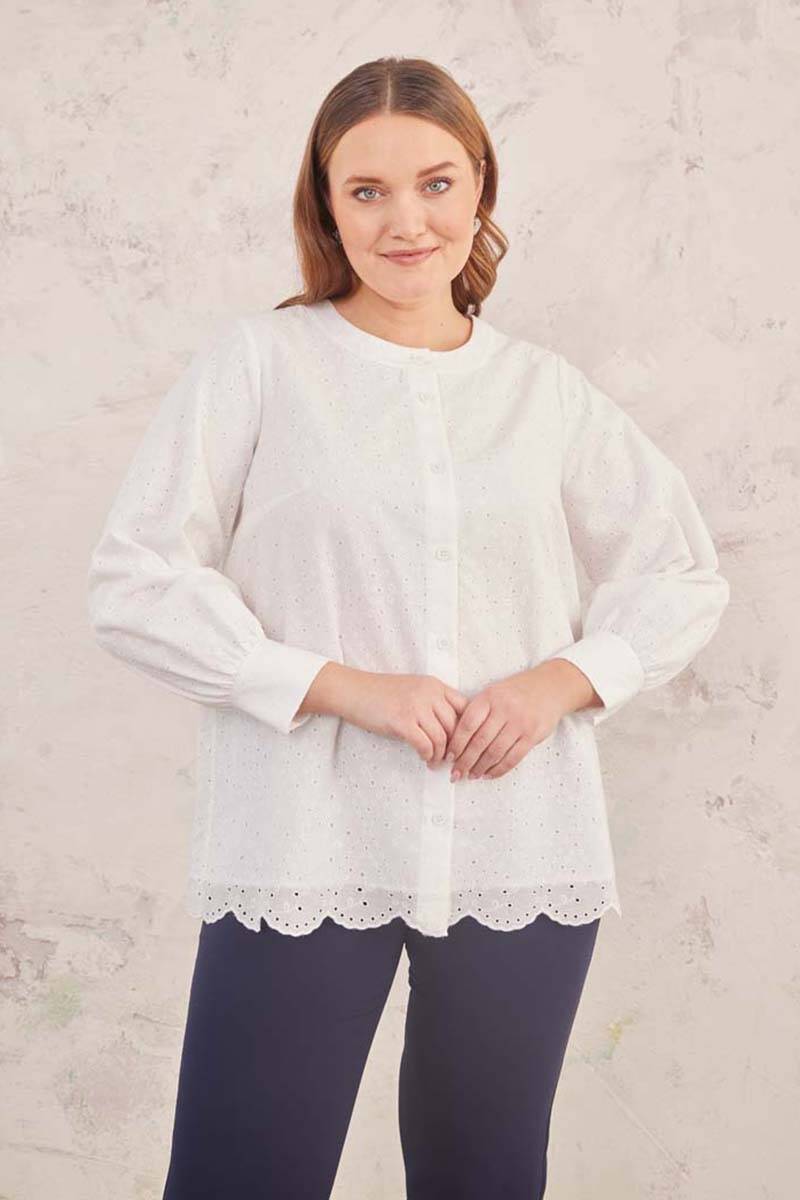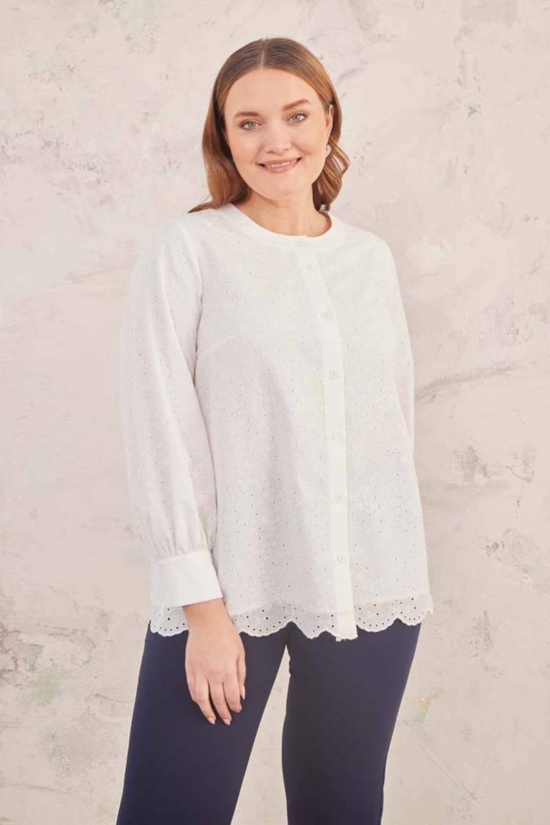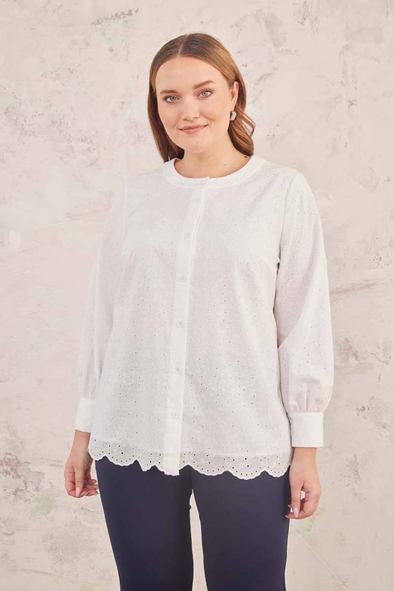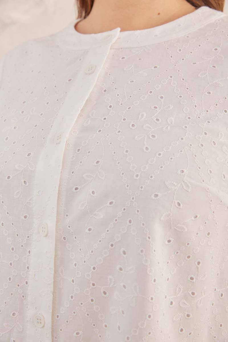 Antrasit Yaka İşlemeli Çizgili Bluz